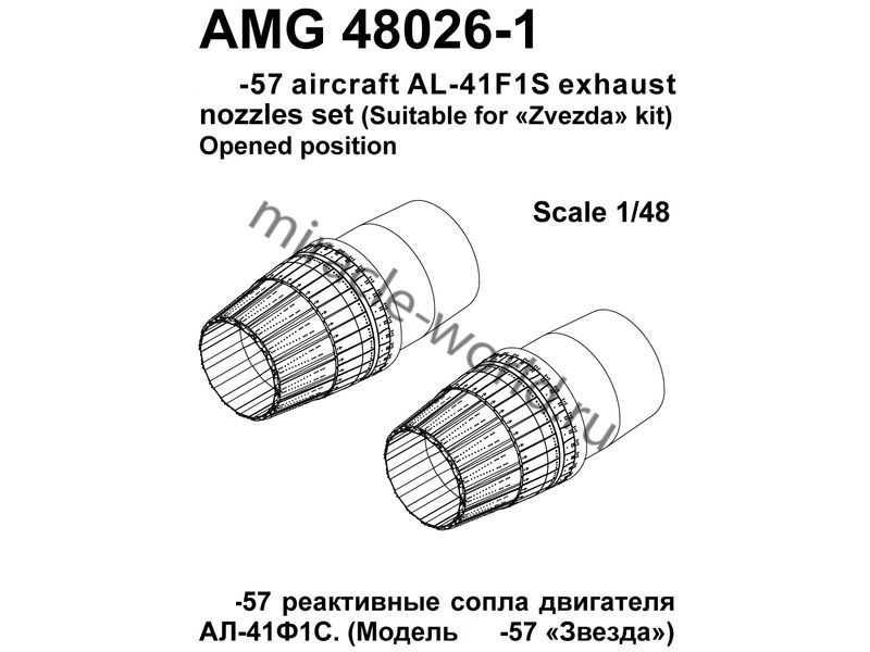 AMIGO AMG 48026-1 РЕАКТИВНОЕ СОПЛО ДВИГАТЕЛЯ АЛ-41Ф1С (2ШТ.) ДЛЯ САМОЛЕТ (С) ТИП 57 (ОТКРЫТОЕ) 1/48 (1/48) продается в 2 магазинах. Выберите подходящий Вам интернет-магазин и перейдите по ссылке «В магазин».