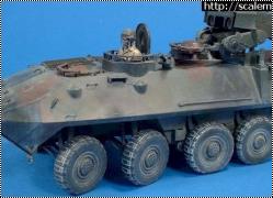 Сборная модель в масштабе 1/72 от производителя АСЕ. Бронетранспортер БТР LAV-25 создавался в рамках проведенного конкурса в 1980 году командованием корпуса морской пехоты США и его созданного подразделения - управления LAV (Light Armored Vehicle легкобронированная машина). После оценочных испытаний в 1982 году, руководители управления LAV объявили победителем конкурса швейцарский БТР Пирана MOWAG 8 × 8, который должен был выпускаться по лицензии канадской фирмой "General Motors of Canada". Было заказано 758 бронетранспортеров LAV-25 с 25-мм пушкой. Первые машины поступили на вооружение морской пехоты США в октябре 1983 года. LAV-AT - модификация LAV-25. (АСЕ-72405)