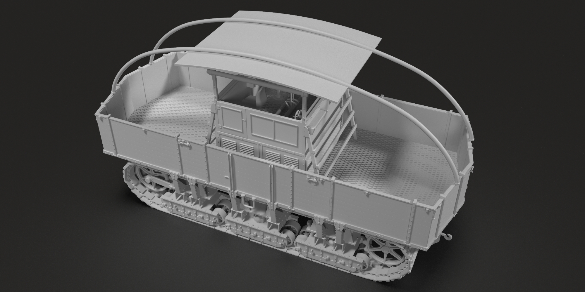 The A7V was a German WW1 tank and the first German-made tank to be used in combat. The first prototypes of the vehicle were created in 1917, and it entered the A7V line in March 1918. Out of the ordered 100 copies, only 20 were produced by the end of the war. The A7V was powered by two 100hp carburettor engines. Its main armament was the 57mm Nordfeld cannon, and the auxiliary armament was 5 7.92mm machineguns. The first use of tanks by the British in the Battle of the Somme in 1916 was a big surprise for the Imperial German army. The Germans, noticing their backwardness in this field of military technology, set up a special technical commission in November 1916, which was to develop guidelines for the construction of a new vehicle. The first effects of her work were visible in the spring of 1917, when wooden models of the German tank were created, and in October of the same year, the first mechanically functional prototypes appeared. However, due to the overload of the German arms industry, the large-scale production of the A7V tank was impossible. Despite a large number of disadvantages (e.g. terrible working conditions of the crew, rocking of the vehicle while driving off-road, numerous and difficult to command the crew)[aż 18 osób!] or relatively thin armor) A7V did not differ significantly in terms of technology from British designs. The A7V tank was used in combat for the first time on March 21, 1918 in the Battle of Saint Quentin, and a month later (April 24, 1918) it also took part in the first history of a tank skirmish.