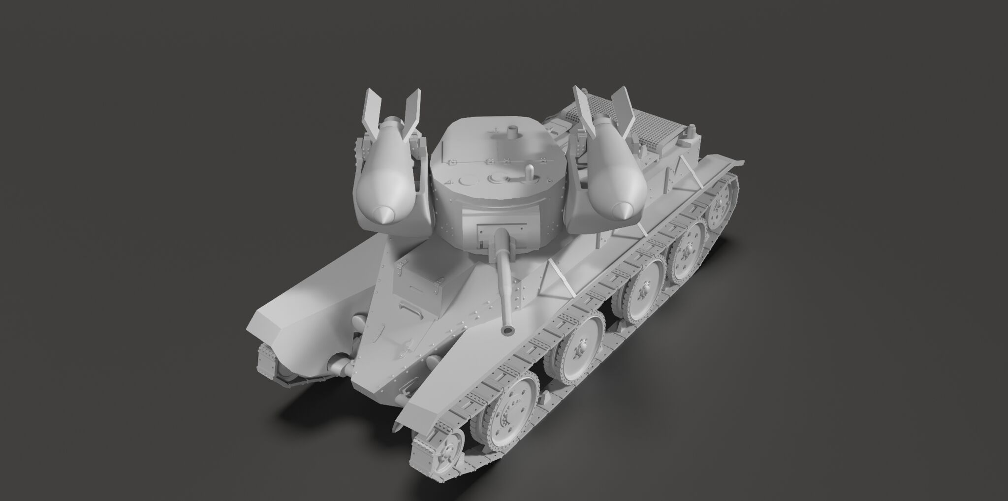 The RBT-5 was a Soviet prototype "missile tank" of the interwar period. The first copy of this tank was made in 1931 or 1932, and its public presentation took place in 1933. The machine, however, never entered mass production. The drive was provided by a single M-5 engine with a capacity of 400 HP. The armament of the vehicle consisted of a single gun mod. 32 caliber 45 mm machine gun, 7.62 mm machine gun and - most likely - two 132 mm or 245 mm or 420 mm unguided rocket launchers. The RBT-5 was a specific development version of the BT-5 high-speed tank. It differed from mass-produced units with a rocket launcher installed on the sides of the turret. It was assumed that the new vehicle would provide direct support to its own attacking tank units, and the range of the missile weapons used on the RBT-5 was estimated at approximately 1200-1500 meters. It is worth adding, however, that launchers of various caliber were mounted and tested on the prototype of this vehicle, which of course had an impact on the effective range of the shot. Ultimately, however, it turned out that the RBT-5 is very easy to destroy by firing at the rockets carried in unshielded launchers. For this reason, the development of this atypical structure was withdrawn.