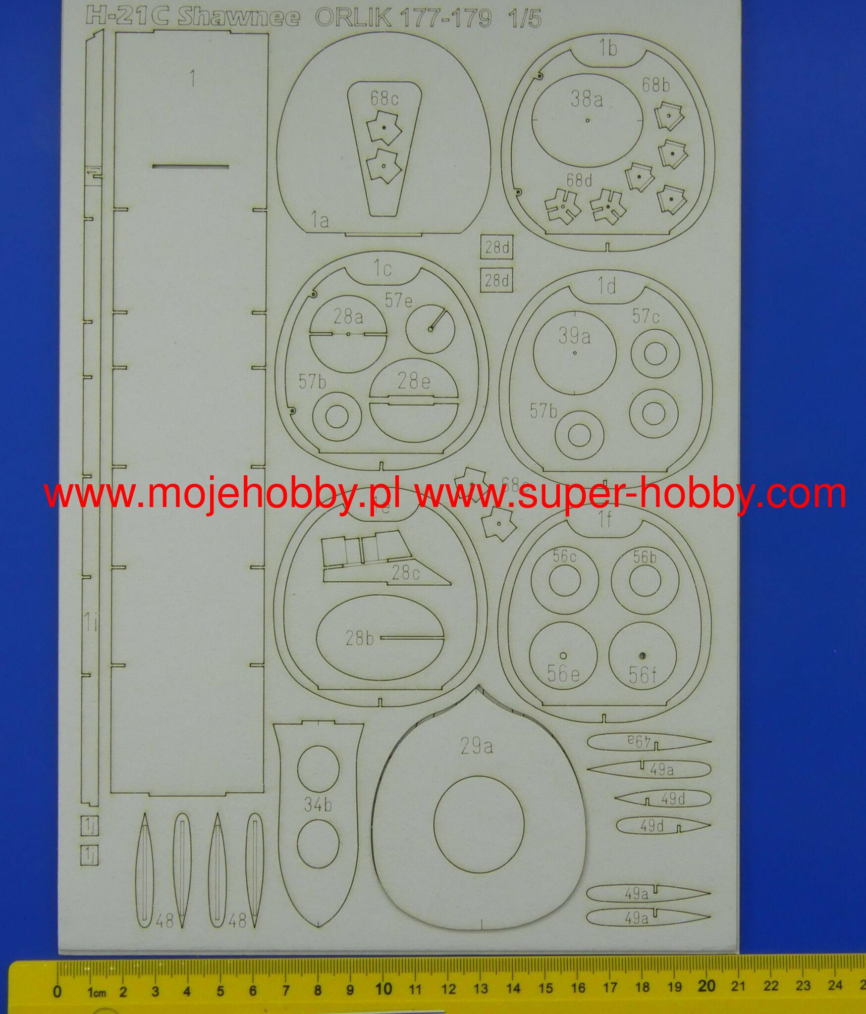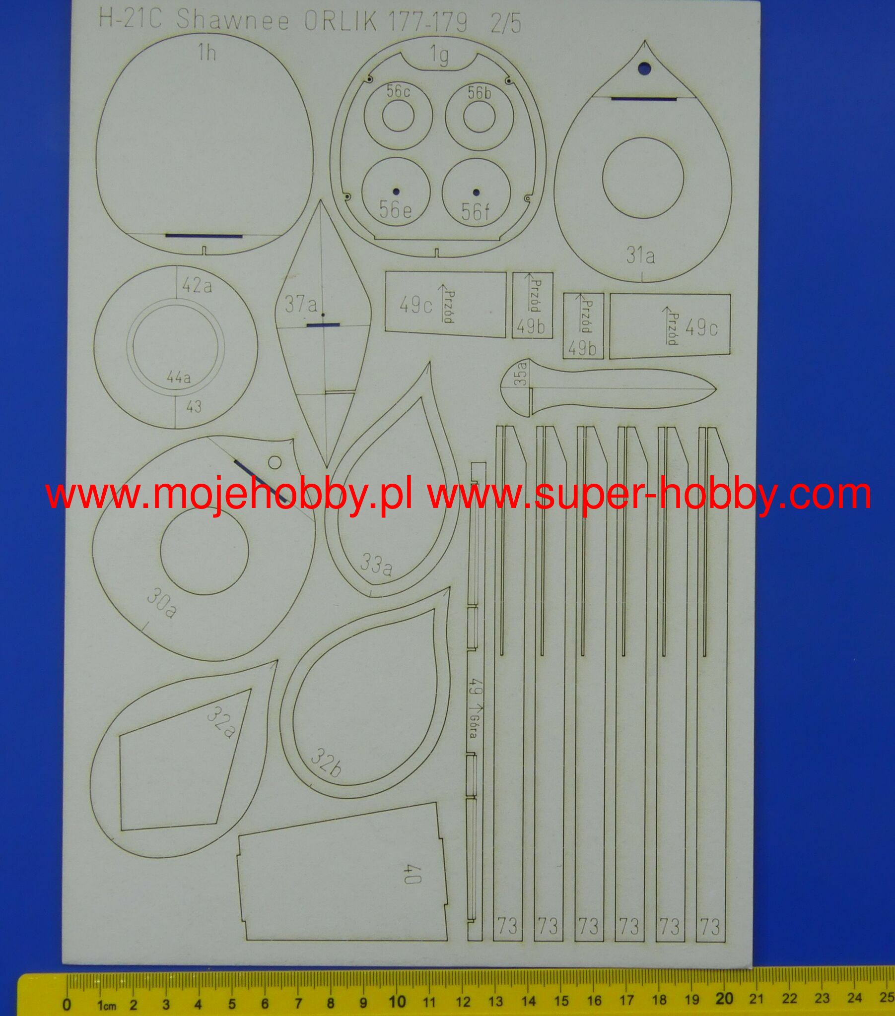 177-179W ELEMENTY WYCINANE LASEROWO DO MODELU ŚMIGŁOWCA PIASECKI H-21C SHAWNEE