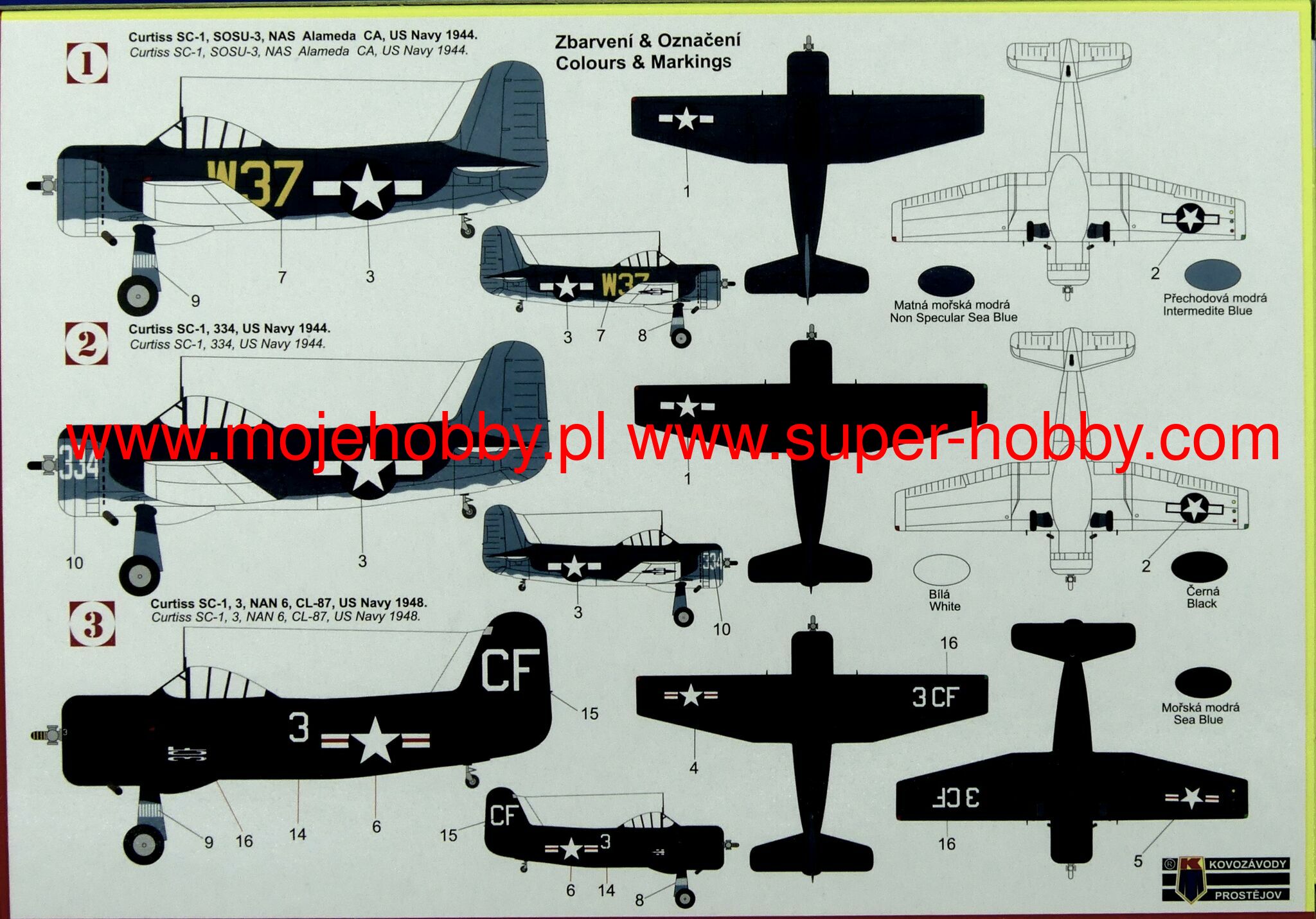 The Curtiss SC-1 Seahawk (Osprey) is an American single-engine single-seat seaplane used in the declining period of World War II. It replaced the OS-2 Kingfisher and SO-3 Seamew machines. The flight of the SC-1 prototype took place in 1942. The first shipment of SC-1 seaplanes, named Seahawk, was in October 1944. The battleship "Guam" was the first to receive these planes. The first known combat action in which the SC-1 Seahawk seaplanes were used was the bombing of the island of Borneo before the landing of the Allied forces there in June 1945. In total, the Curtiss plant in Columbus built about 550 serial SC-1 and, after the war, 9 seaplanes in the 2-seat variant SC-2. In addition, 7 prototypes were built. The SC-1 is a single-seater all-metal seaplane with a working light alloy cover, adapted to take off from ship catapults. Behind the pilot's cabin there was a room to accommodate a man, which made it possible to use the aircraft for sea rescue purposes. The floor, as in all US Navy reconnaissance seaplanes, consisted of a central float mounted on a single pylon and two side support floats. They were armed with 2 Colt-Browning 12.7 mm fixed machine guns, installed in the midship. The plane could also take 2 bombs of 45 kg in the chamber located in the central float and equipped with a watertight door, and 2 bombs of 112 kg on the ejectors under the mid-plane. Instead of one of these bombs, the ASH radar canister could be taken. Technical data: Maximum speed: 504 km / h, maximum 11,400 m, maximum range: 1,000 km.