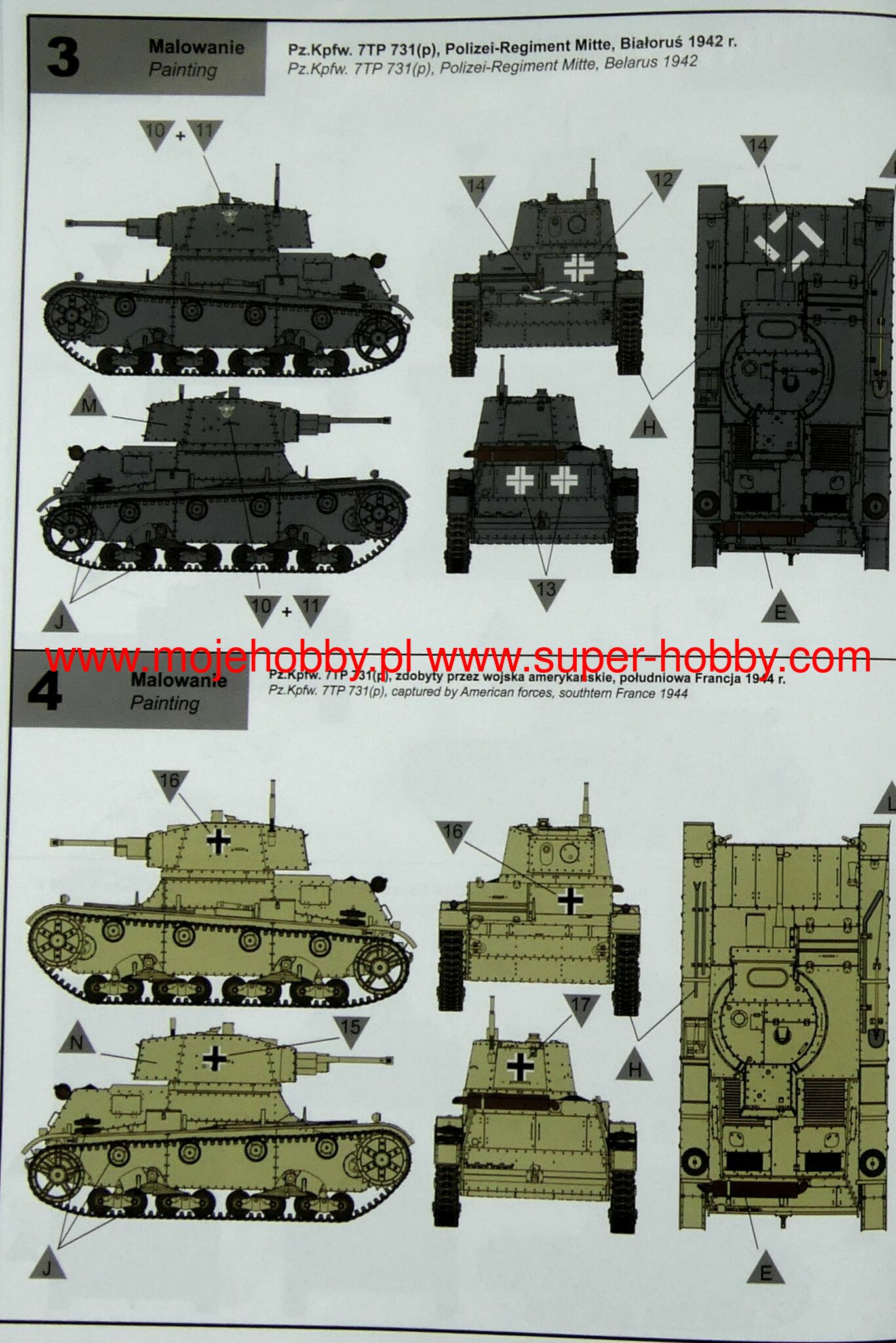 Polish light tank from the beginning of World War II. The 7TP tank, along with the tankettes (e.g. TKS), was the basic element of the Polish armored forces in 1939. 7 TP was designed at Państwowe Zakłady Inżynierii in Ursus, where it was also produced since 1935. The tank is a development of the British Vickers E, the license of which was acquired by Poland in the early 1930s. The first 24 examples of the 7TP were twin-turret vehicles, the next serial ones (built from 1937) already had one turret, and the main armament was the anti-tank gun. 37mm by Bofors. The 7TP tank was a technically advanced design for its time. It was one of the first in the world to have a diesel engine, a reversible periscope, and in some copies also radio stations (RKBc 2N / C) with a range of up to 25 km. During the September campaign, around 130 tanks of this type of all variants were used. The 7TP proved itself on the battlefields of September 1939 as an opponent towering over the German Pz.Kpfw I and II, and at least equal to the Pz.Kpfw III and IV. Technical data: weight 9.4-9.9t, engine power: 110HP, speed: 37km / h, armament (single turret version): 1 Bofors 37mm cannon, 1 machine gun wz. 30 cal. 7.92mm.