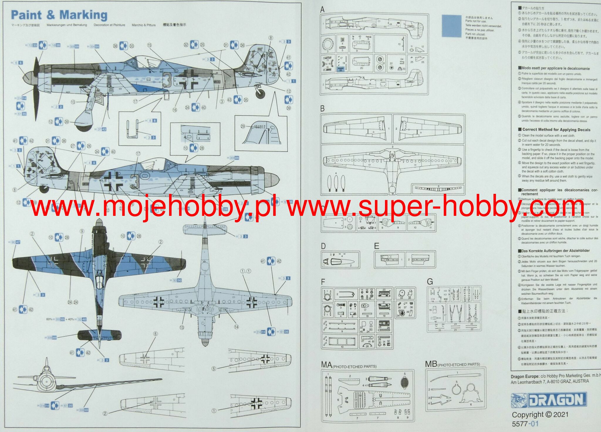 The Focke Wulf Ta-152 is a German, single-engine, all-metal, low-wing interceptor from the end of WWII. The prototype flight took place on July 12, 1944, and it was delivered to the line units in January 1945. The Ta-152 was a response to the Allied bombing raids over the Third Reich and was designed to fight heavy bombers and escort fighters, mainly with P-51 and P -47. Despite its external similarity, it was not another version of the Fw-190, but a completely new aircraft, but using many components from the Fw-190. The role of the drive unit was performed by the Jumo 213-1 engine with a take-off power of 1880KM and a maximum of 2250KM. Originally, it was planned to create the entire Ta-152 family with hunting, fighter-bomber and reconnaissance functions, but only the Ta-152-H version, which was a classic fighter, was mass-produced. Due to the Allied air raids and the worsening supply situation, only 67 Ta-152s were produced. During the short combat service, the Ta-152 turned out to be a machine at least equal to the performance of the American machines, and even better on several planes (shorter turning radius, better climb). Technical data: length: 10.82m, wingspan: 14.44m, height: 3.36m, maximum speed: 750km / h, climb speed: 16.7m / s, maximum range: 1500km, maximum ceiling 13500m, armament: fixed - a single 30mm cannon and two 20mm cannons.