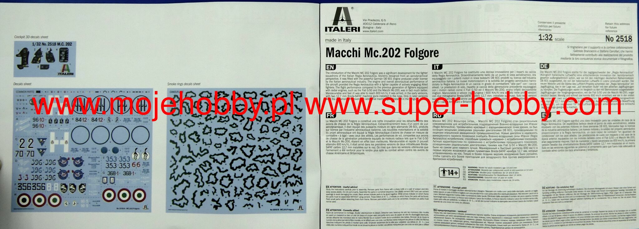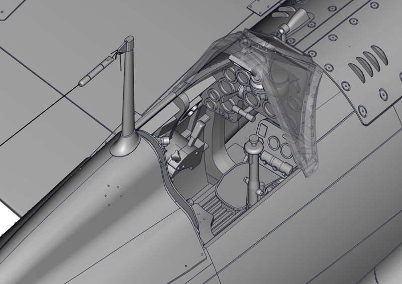 Super-detailed cockpit with 3D decals - Finely detailed engine and nose gun bay - Detailed landing gear with optionals wells covers - PE parts for engine, flaps, cockpit and overall detailing - Realistic panel lines and rivets - Moveable wings and tail ailerons - Open or closed flaps - Two types of tail ailerons - Super decals sheet for 8 versions - Realistic smoke rings decals with application guide - Colored painting and decals guide