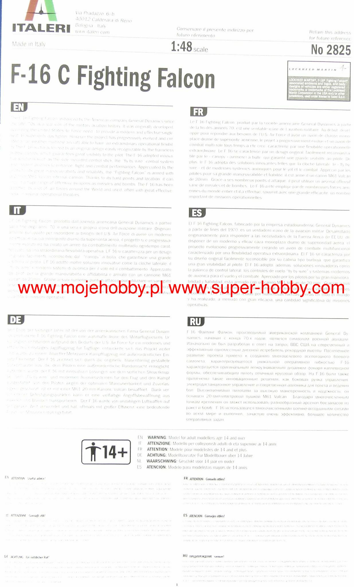 The F-16 Fighting Falcon, produced by the American company General Dynamics since the late '70s, is a real icon of the military aviation history. It was originally developed, according the United States Air Force need, to provide a modern and effective single-seat air superiority day fighter. However the project has progressively evolved and created an all-weather multirole aircraft able to have an extraordinary operational flexibility The F-16 is characterized by an original design easily recognizable by the frameless bubble canopy, which guarantees great visibility to the pilot. The F-16 adopted innovative solutions such as the side-mounted control stick, the "fly-by-wire" control system and modern avionics to enhance flight and combat performances. Appreciated by the pilots for its great manoeuvrability and reliability, the “Fighting Falcon” is armed with a 20mm M61 Vulcan internal cannon. Thanks to its hard points and location, it can mount a huge range of offensive weapons as missiles and bombs. The F-16 has been adopted by a lot of air forces around the World and used, often with great effectiveness, in several operational theatres.