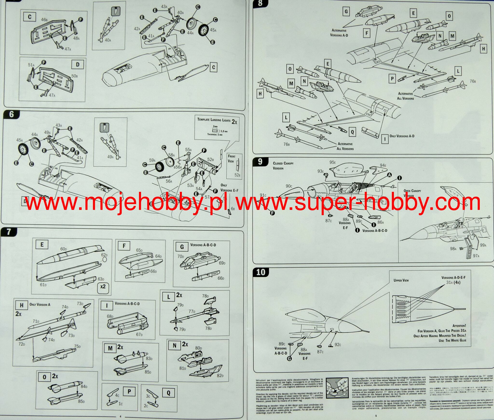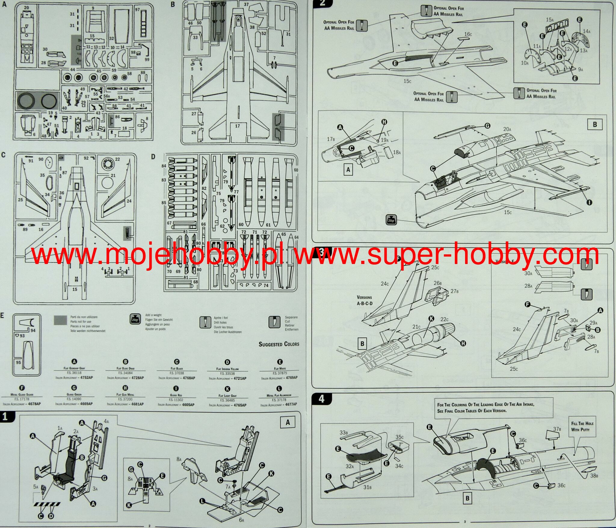 NEW PARTS - SUPER DECALS SHEET FOR 6 VERSIONS - COLOR INSTRUCTION SHEET