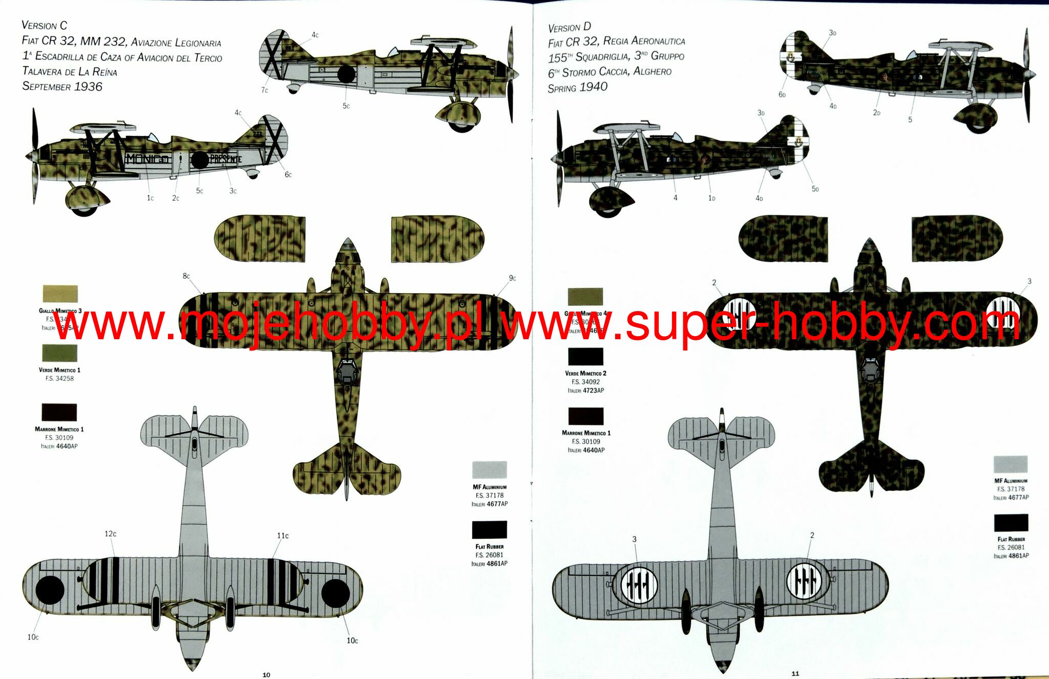 SUPER DECALS SHEET FOR 5 VERSIONS - COLOR INSTUCTION SHEET