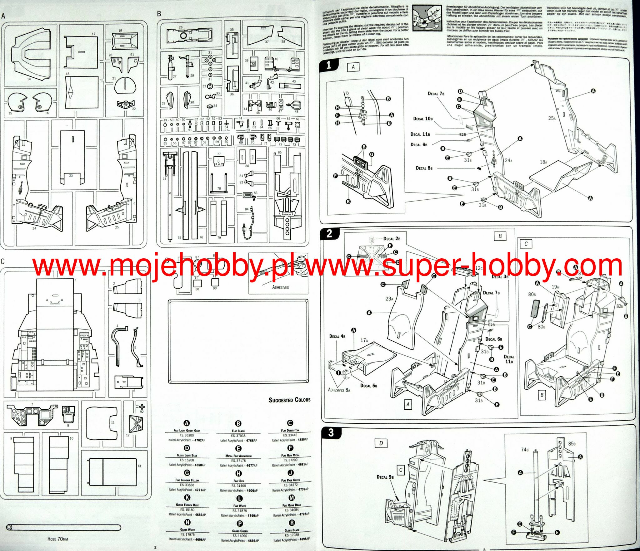 115 parts - Fully detailed real F-16 cockpit controls - Fully detailed MD ACES II ejection seat - Complete cockpit dials decals - Adhesive acetate silk seat belts - Pilot’s visor, gunsight and radar scope clear parts - Pilot’s helmet and oxygen mask