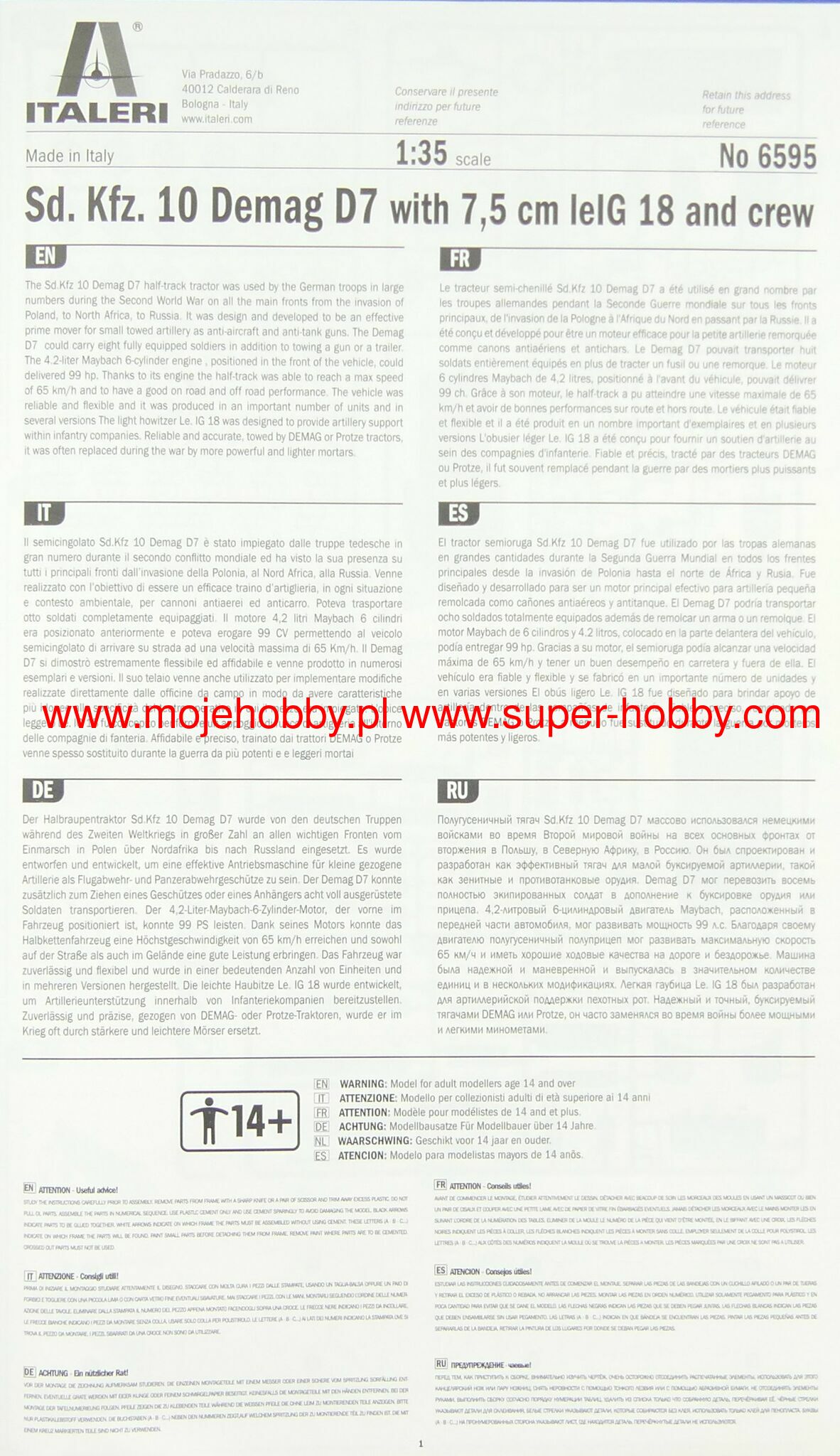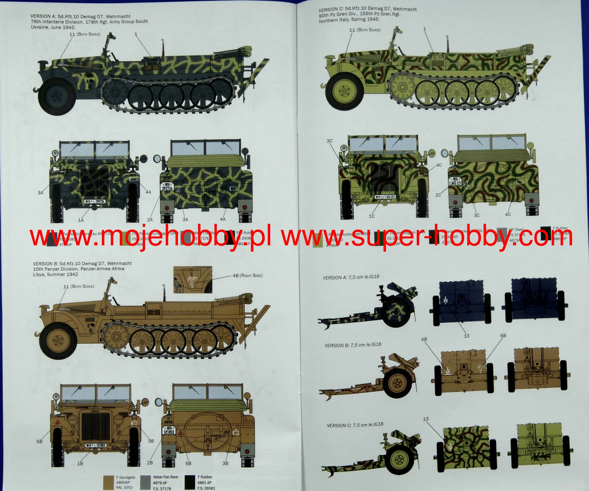 The Sd.Kfz 10 Demag D7 half-track tractor was used by the German troops in large numbers during the Second World War on all the main fronts from the invasion of Poland, to North Africa, to Russia. It was design and developed to be an effective prime mover for small towed artillery as anti-aircraft and anti-tank guns. The Demag D7 could carry eight fully equipped soldiers in addition to towing a gun or a trailer. The 4.2-liter Maybach 6-cylinder engine , positioned in the front of the vehicle, could delivered 99 hp. Thanks to its engine the half-track was able to reach a max speed of 65 km/h and to have a good on road and off road performance. The vehicle was reliable and flexible and it was produced in an important number of units and in several versions The light howitzer Le. IG 18 was designed to provide artillery support within infantry companies. Reliable and accurate, towed by DEMAG or Protze tractors, it was often replaced during the war by more powerful and lighter mortars.