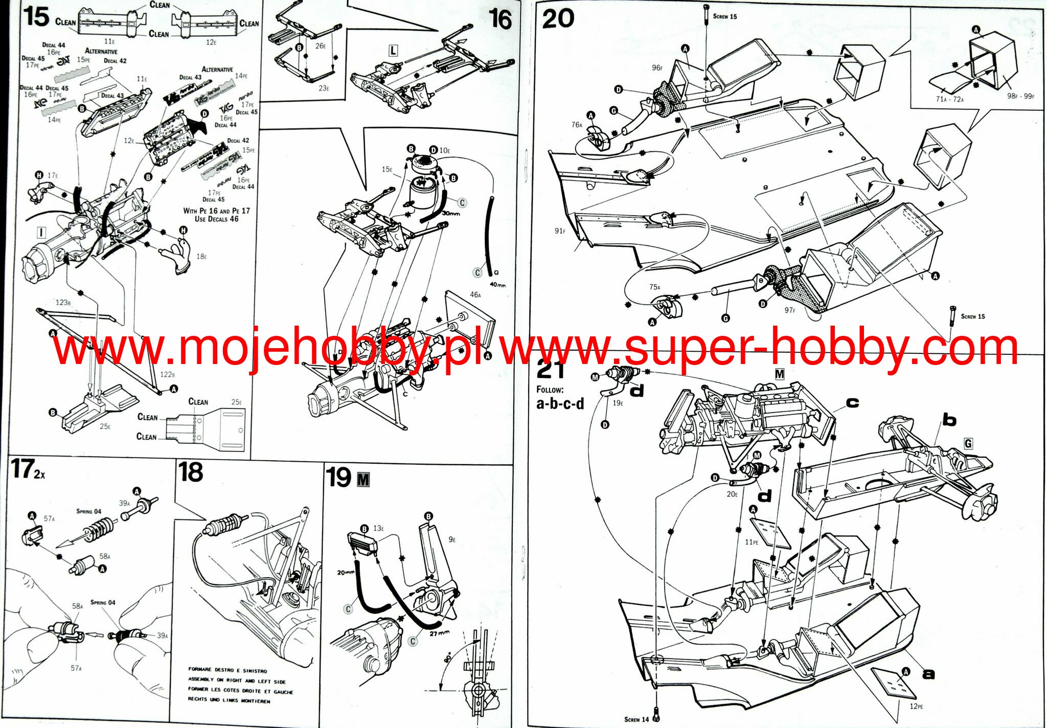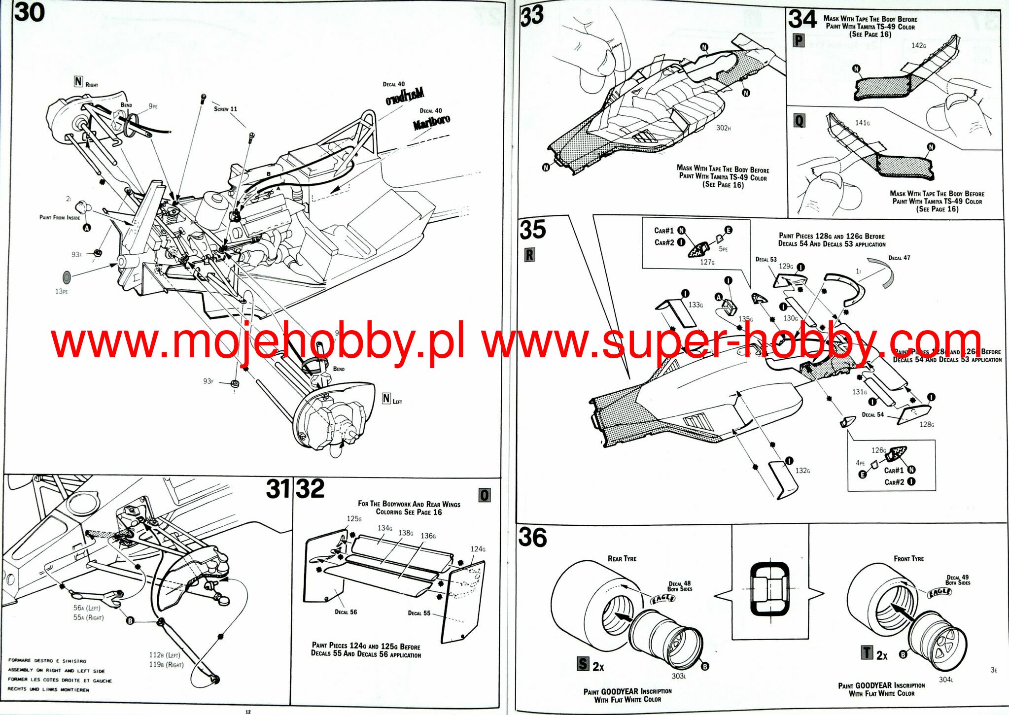 Detailed suspension - Highly detailed engine - Rubber tyres - Photoetched Parts - Removable body cowlings - 2 new decals sheet: Sheet A - Exterior, cockpit and engine. Sheet B - Composit materials - Decals for 2 versions: 1986 Campionship #1 Alain Prost - 1986 Campionship #2 Keke Rosberg