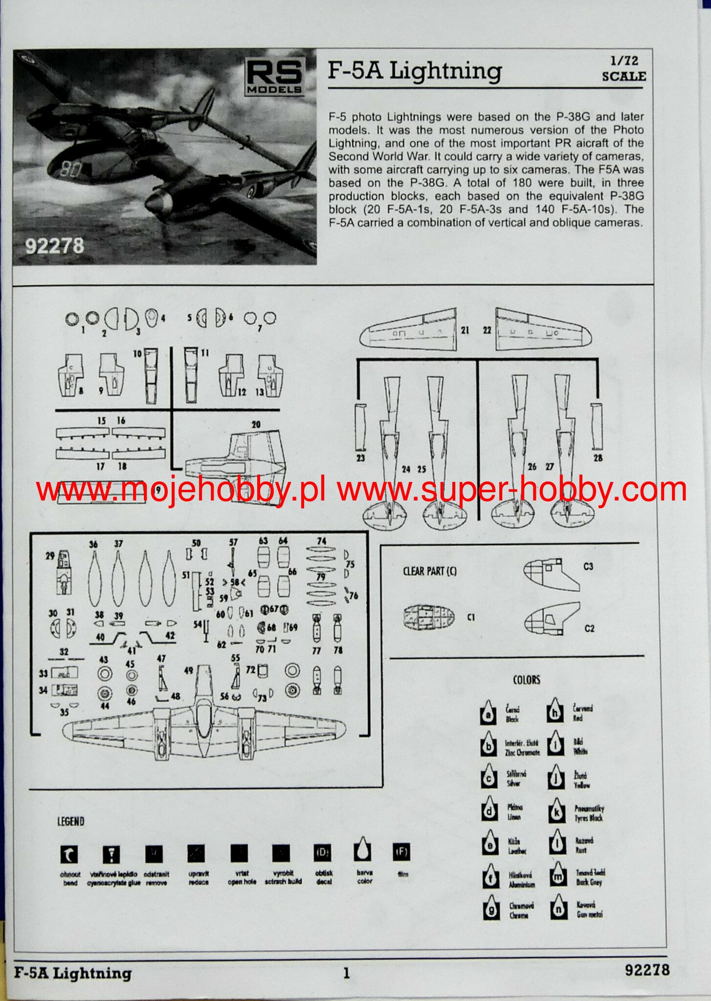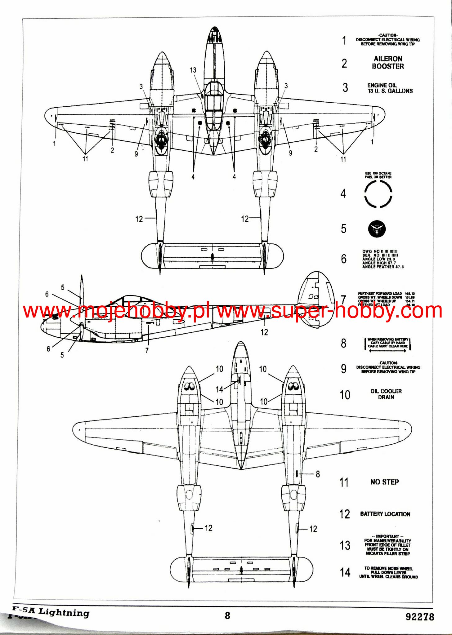 The Lockheed P-38 Lightning is an American, twin-engine, multi-role, long-range fighter with a double-bar structure with a three-wheeled undercarriage and a full metal structure. One of the most important American fighters of World War II. Already when the first prototype of the XP-38 was taken into the air in 1939, it was clear that the future of fighter aviation would belong to this aircraft. At a time when the maximum speed of over 500 km / h was considered a really great result, the almost 650 km / h achieved by the P-38 was a real shock for everyone. In the early stages of World War II, Lightning suffered from various childhood illnesses, but as time passed, all problems were gradually resolved and subsequent versions of the aircraft became more and more lethal to its opponents, while gaining the qualities of entrusting the P-38 with various, specific tasks: from bomber escorts, through photographic reconnaissance, to independent bombing. Due to the multitude of tasks, the P-38 was produced in at least a dozen versions. The first P-38 and P-38D were not used in combat, but were a kind of "improvement platforms". The P-38E turned out to be the first mass-produced fighter aircraft. The version of the P-38F was very similar to it, only that it had much more powerful engines with turbochargers. In 1943, the P-38J version was created, it was improved with, among others, the turbocharger steering system, engine cooling, the nose profile of the fuselage was changed, all this significantly influenced the performance of the machine. One of the last fighter-bomber versions was the P-38L version with powerful Allison V-1710-111 / 113 engines with a maximum power of 1620HP. There were also reconnaissance versions (F4 and F5). Technical data: length: 11.53 m, wingspan: 15.85 m, height: 3.91 m, maximum speed: 712 km / h, climb speed: 24.1 m / s, maximum range: 2,100 km, practical ceiling: 13,000 m, armament: Fixed - 4 M2 12.7mm machine guns, 1 20mm Hispano cannon, sling - up to 1800 kg payload.