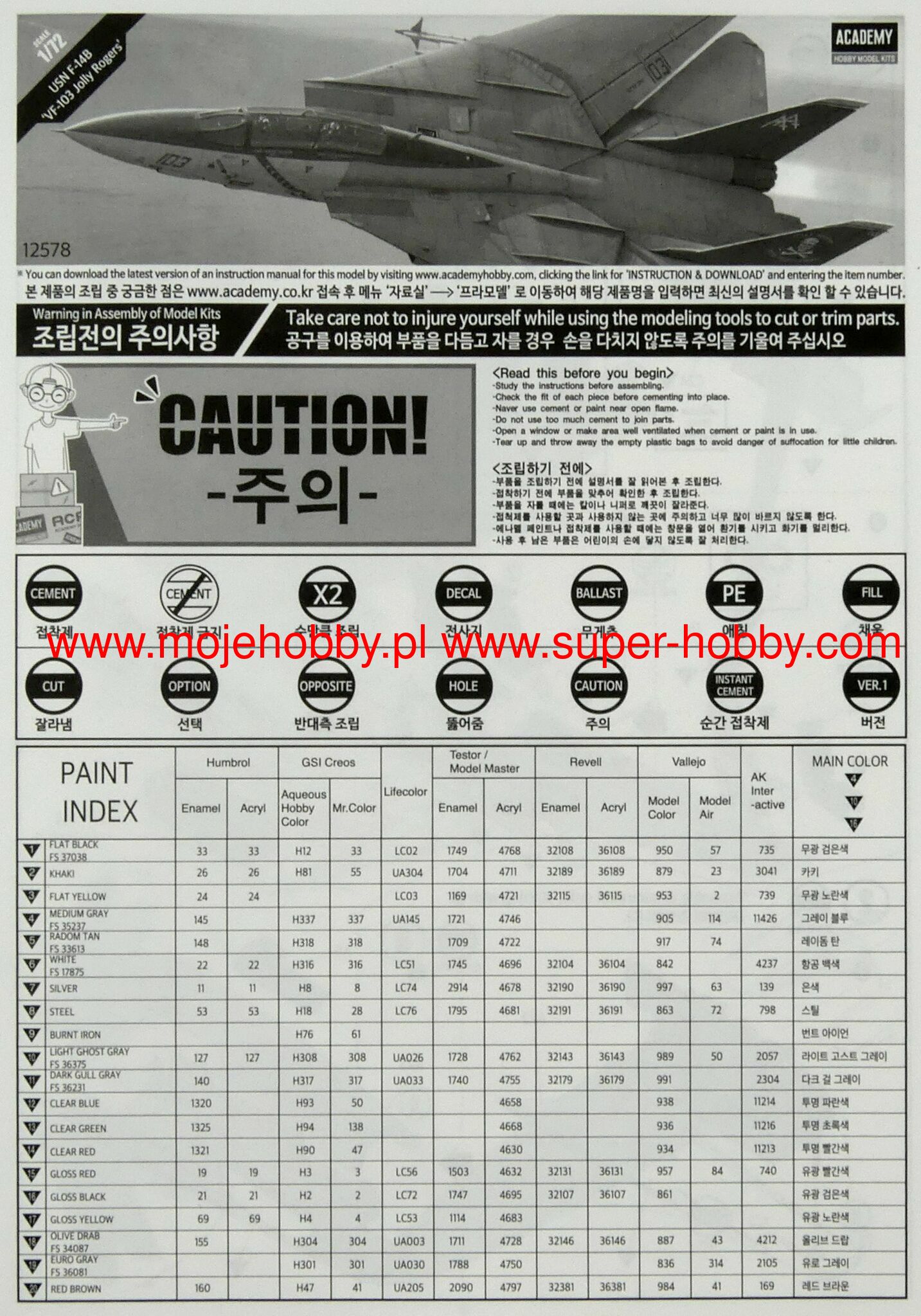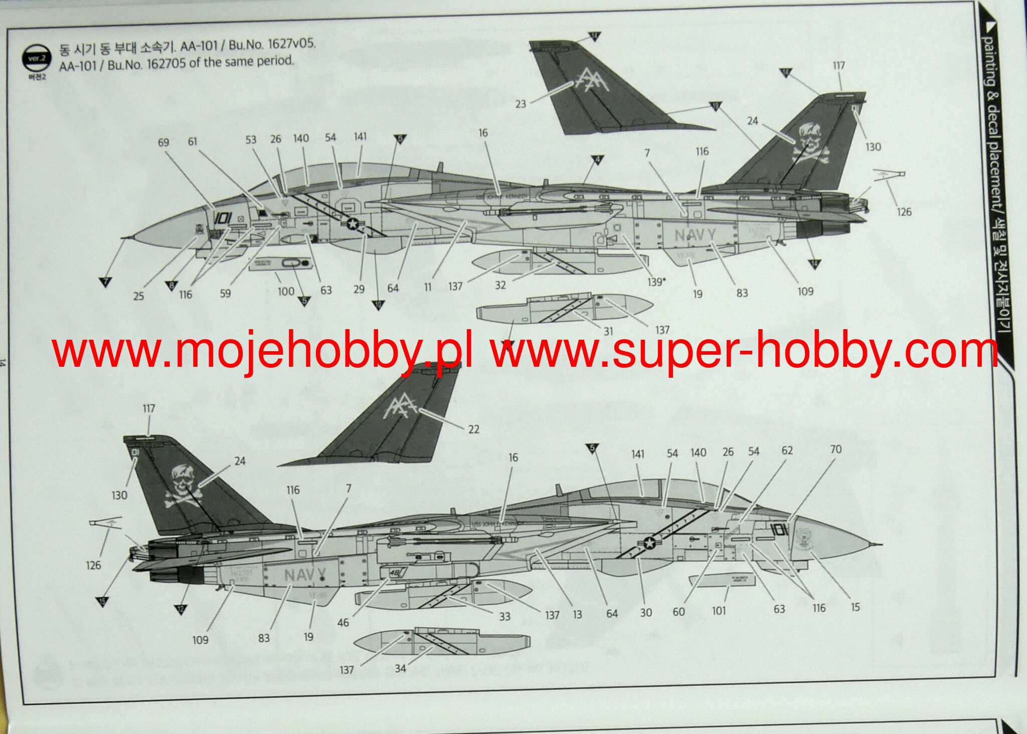 Описание Грумман Ф-14 Томкэт (англ. Grumman F-14 Tomcat, рус. кот) двухместный реактивный палубный истребитель-перехватчик/многоцелевой истребитель четвёртого поколения с изменяемой геометрией крыла, производства Grumman Aircraft Engineering Corporation. Разработан в начале 1970-х для замены в ВМС США истребителя F-4 Фантом II. На вооружении с 1974 года. Снят с вооружения ВМС США в 2006 и заменён на F/A-18E/F Super Hornet. Поставлялся на экспорт в Иран и состоит там на вооружении в настоящее время. F-14A+ или F-14B Улучшенная версия самолёта F-14A с двигателями GE F110-400. Большая часть оборудования, в том числе радар AWG-9, оставлена без изменений. A+ получил отдельный от дисплея HSD прибор системы предупреждения об облучении в кабине пилота. Позднее получил обозначение F-14B. Всего было построено 38 самолётов F-14B, ещё 48 были переоборудованы из варианта F-14A. В конце 90-х годов у 67 F-14B был продлён ресурс планера и улучшено бортовое оборудование, в частности новый ИЛС SPARROWHAWK. Модифицированные самолёты получили обозначение F-14B Upgrade. - Точно детализированная кабина пилота и шасси - В комплекте подвесные баки и различное вооружение класса "воздух-воздух". - Точная расшивка и заклепки - Крылья могут быть собраны в различных положениях - В комплект входит декаль Cartograf premium