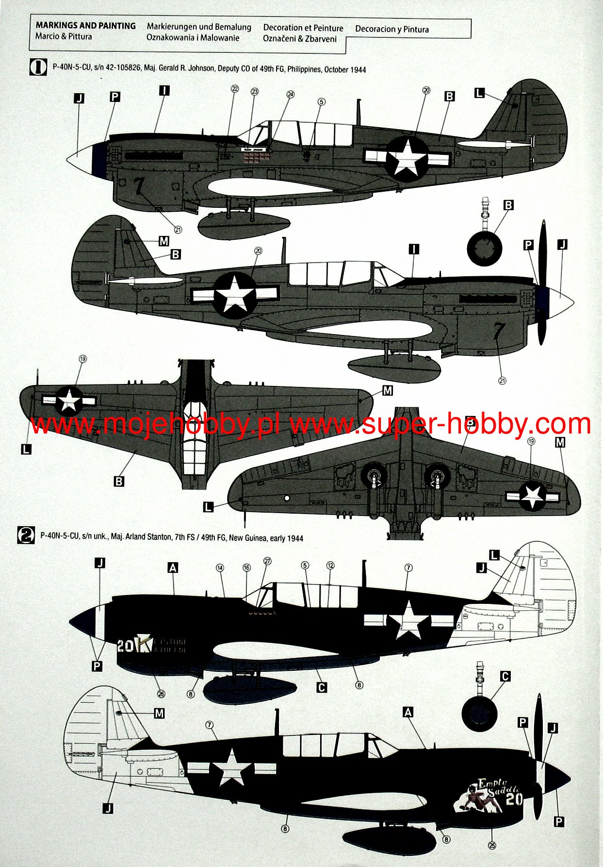 The Curtiss P-40 Warhawk is an American, single-engine, metal fighter-attack aircraft in a low wing configuration with a classic tail. The flight of the prototype took place in 1938, and serial production was carried out in the years 1938-1944. The last of the Hawk family of planes - the Curtiss P-40 Warhawk was, apart from the Republic P-47 and the North American P-51 Mustang, the most widely built American fighter. At the end of production in December 1944, the number of machines exceeded 15,000. The development of the design began in 1937, when the prototype airframe of version 75 was adapted to the installation of the 1167HP Allison V-1710-11 in-line engine. The plane became the first American construction capable of flying at speeds over 483 km / h. The version for the RAF was called the Tomahawk Mk IIA. The planes had self-sealing fuel tanks and two wing-mounted 7.7mm machine guns. The Tomahawk MkIIB were equipped with American radio hardware and armed with six 7.7mm machine guns. Some American P-40s were modernized in 1941 for reconnaissance tasks. They received the designation RP-40. Meanwhile, work on the Hawk 81-A was underway at the Curtiss facility. The changes included the installation of the Allison V-1710-39 engine with a capacity of 1167KM, providing constant power up to a height of 3563 meters, adaptation for installation in the wing of four 12.7mm machine guns and the installation of a fuselage node that could carry one bomb weighing 227 kg or thrown back additional fuel tank. The US Army placed an order for these machines in September 1940, awarding them the designation P-40D. Over the next three years, Curtiss made every effort to expand the application possibilities of the P-40, creating numerous new versions of the aircraft. Despite these efforts, Warhawk's performance was lower than that of contemporary Allied and Axis fighters. Technical data (P-40E version): length: 9.66m, wingspan: 11.38m, height: 3.76m, maximum speed: 580km / h, rate of climb: 11m / s, maximum range: 1100km, practical ceiling: 8800m, armament: fixed - 6 M2 machine guns, caliber 12.7 mm, suspended - up to 900 kg of cargo.