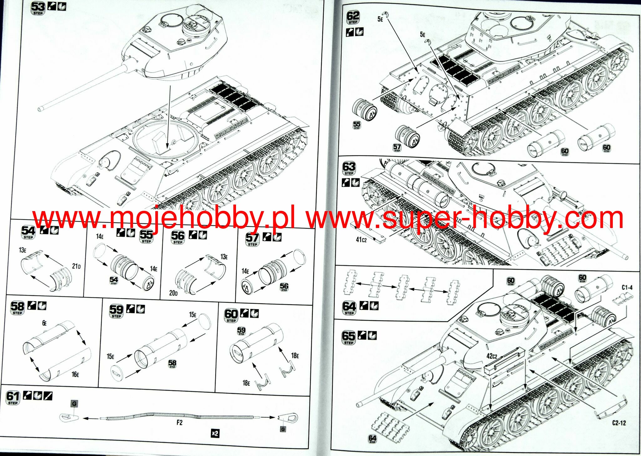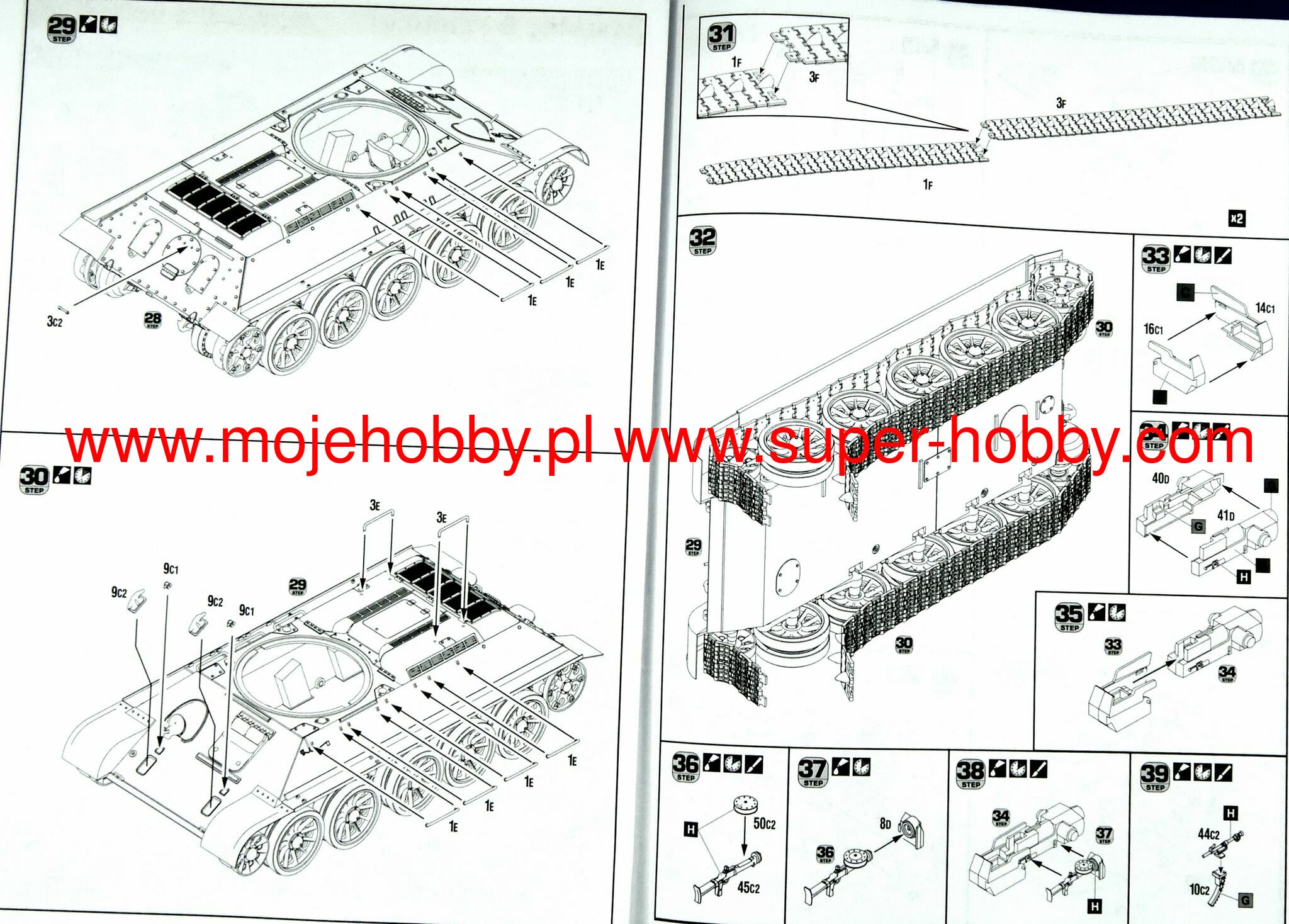 Note: Comany Mistercraft frequently changes, without any notice, the decals that come with the model, so they may differ from the photos and descriptions on our website. If you need a specific version, please let us know about that by entering the appropriate notice in the comments field when placing the order. The T-34 was a Soviet medium tank from the Second World War and the post-war period. The first prototypes were built in 1937-1940, and serial production in the USSR was carried out in 1940-1957. About 84,000 vehicles of this type were built in its course, which makes the T-34 one of the most produced tanks in history! The drive was provided by a single engine V-2-34 with a power of 500 hp. The length of the car - in the T34 / 76 version - was 6.68 m, with a width of 3 meters. The armament consisted of a 76.2 mm F-34 gun and two 7.62 mm DT machineguns. The main armament in the T-34/85 version was the 85mm ZIS-S-53 gun. The T-34 is undoubtedly one of the most famous tanks in the history of both World War II and military in general, representing a specific symbol of Soviet victory in the war with the Third Reich. The vehicle was developed for the needs of the Red Army as a successor to the so-called pursuit tanks from the BT series (BT-5 and BT-7), but also the T-26 tank. Work on the car started in 1937 in a special design office at the Steam Engine Factory in Kharkiv. Initially, the works were managed by Eng. Adolf Dik (he also made the first sketches of the new car), and after his arrest by the Soviet security authorities, Mikhail Koszkin managed the work. Initially, the vehicle was designated as A-20. However, a second prototype (A-32) was quickly built, with a main armament in the form of a 76.2 mm cannon and much thicker frontal armor. It was the latter prototype that was finally adopted for production. It can be assumed that when it was introduced into service, the TT-34 was a very successful tank in many respects. It was characterized - as in 1940 - with a very strong weapon, it had a well-profiled armor based on sloped armor plates, as well as very high mobility and off-road driving properties. The disadvantages include the very poor ergonomics of the car or the poor optics used in the first production batches. Despite these shortcomings, when the T-34 appeared on the Eastern Front, German troops were greatly surprised by it. The high overall rating of the T-34 and its combat values determined its mass production and making it the basic tank of the Red Army during the fights in 1942-1945. They also resulted in further improvements to the structure, e.g. in 1942 a new hexagonal tower appeared, improving the quality of work of crew members with the commander's cupola. The engine and gearbox were also improved. However, in 1944, the T-34/85 model was introduced into service, with a completely new three-man turret and the main armament in the form of an 85 mm cannon. The T-34 tank fought in virtually all major battles fought between the Red Army and the Wehrmacht on the Eastern Front in 1941-1945: starting at the Battle of Moscow, through the battles of Stalingrad and Kursk, Operation Bagration, and the capture of Berlin. After 1945, the T-34 tank was still in service, it was also widely exported outside the USSR to countries such as Czechoslovakia, Poland, East Germany, Hungary and Syria.