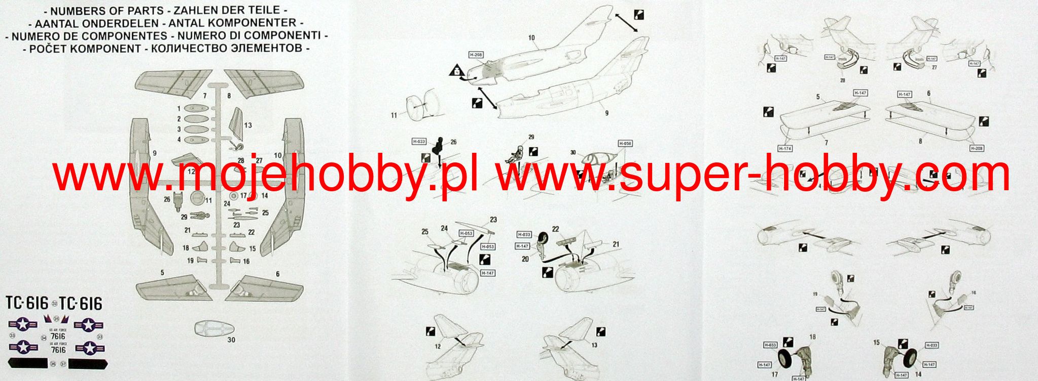 The Mikojan-Guriewicz MIG-15 is a Soviet, single-engine, wide-slant, full-metal jet fighter known by the NATO term Fagot or Midget. The flight of the prototype took place in December 1947, and the entry into the line in 1949. In total, in the USSR and under license (including Poland, as the Lim-1 and Lim-2), over 18,000 machines of all varieties and versions of the MIG-15 were created. lack of a proper engine. Only after copying the British Rolls-Royce Nene Mk.I and using it in the new airframe, it was possible to fly the future MIG 15. The basic versions are the MIG-15P (all-weather fighter), MIG-15UTI (training machine , two-seater), MIG-15SB (fighter-bomber) and MIG-15bis (fighter with the new WK-1 engine). The MIG-15 became a legendary aircraft during the Korean War (1950-1953), where it outclassed Western fighter machines until the arrival of the F-86 Saber. MIG-15 also took part in min. the Middle East conflicts (1966-1967) or the Suez crisis (1956). Technical data (MIG-15bis version): length: 10.1m, wingspan: 10.1m, height: 3.7m, maximum speed: 1075km / h, rate of climb: 50m / s, maximum range: 1310km, maximum ceiling 15500m armament: fixed - 2 NR-23 cannons, caliber 23 mm and 1 Nudelman N-37 cannon, caliber 37 mm, suspended - 200 kg of cargo.