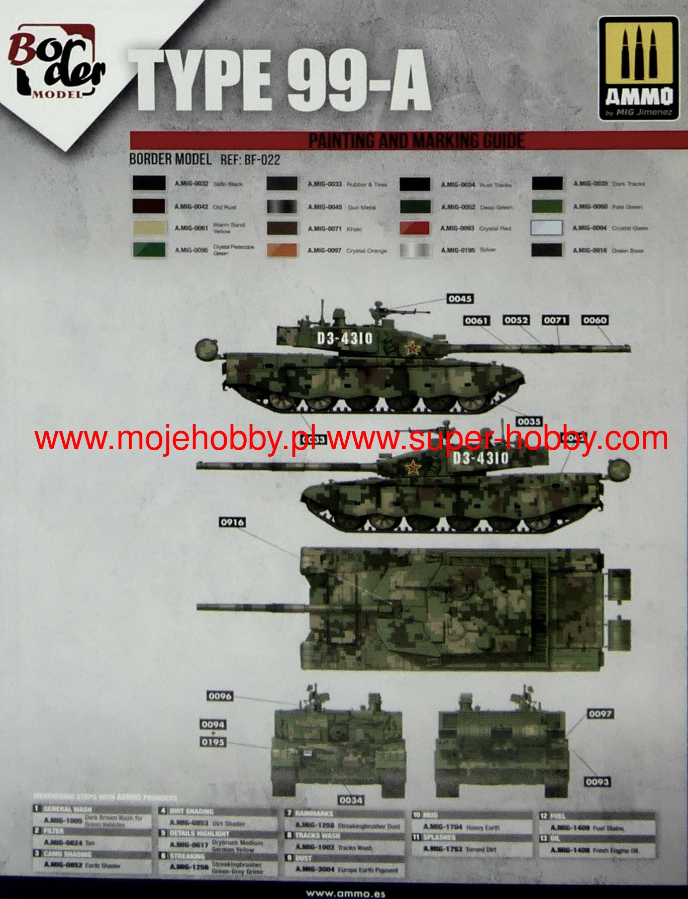 The ZTZ-99 or Type 99 is a modern 3rd generation Chinese Main Battle Tank. The first prototypes of the vehicle were probably created in the mid-1990s, and serial production started in 2001 continues to this day. So far (2018), approximately 300-500 tanks of this type have been produced. The ZTZ-99 is powered by a 1500 HP diesel engine. The vehicle is armed with a single 125mm ZPT-98 tank gun. In addition, the tank's armament consists of 2 machine guns: cal. 12.7 mm and 7.62 mm. The ZTZ-99 was created as a successor to the Type 85 tank and a very far-reaching development of the ZTZ-98G vehicle. Chinese designers set themselves the goal of the ZTZ-99 to create a machine that would be able to match Western designs like the Leopard 2A6 or M1A1 Abrams. Despite being kept secret of more precise data on the ZTZ-99, it is undoubtedly the most modern tank of the PRC army. It has effective main weapons, probably only slightly inferior to Western solutions. It also has a powerful 1500 HP engine, giving it good maneuverability and off-road mobility, and finally has a modern SKO (fire control system) and good observation devices. It almost certainly uses composite armor with elements of reactive armor. In 2007, the tests of the ZTZ-99A car were also revealed, with even better armor and - probably - an active defense system. Without a doubt, the ZTZ-99 is a significant advance in Chinese armored weapons with combat values comparable to those of the Western ones.