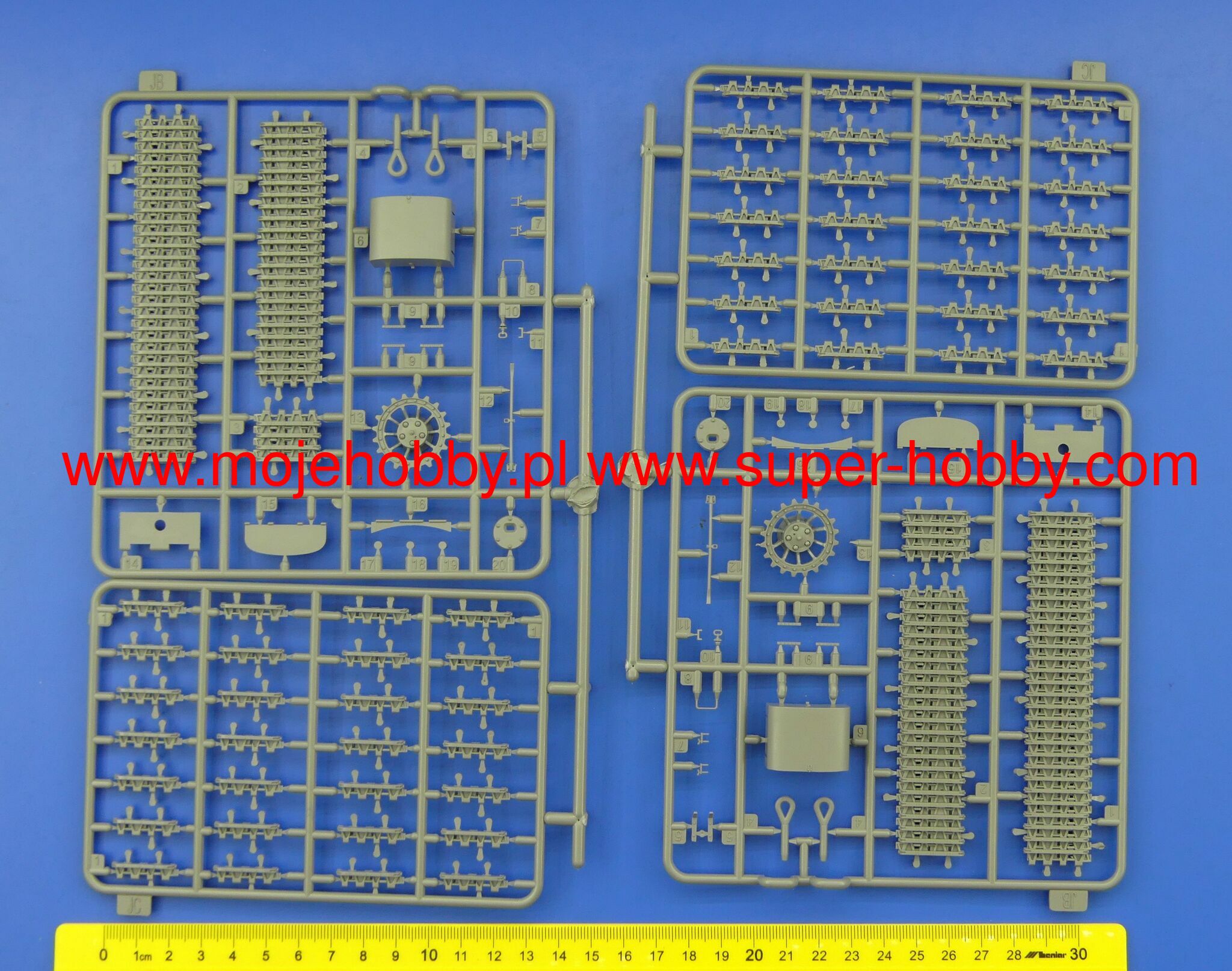 The Pz.Kpfw VI (Sd.Kfz.181) Tiger is a German heavy tank from World War II, one of the most famous combat vehicles of that time. The command of the German Panzerwaffe had the idea of creating a heavy tank from the beginning of the war, but the first attempts in the form of the centuries-old Neubaufahrzeuge tank turned out to be unsuccessful. In 1939 and 1940 they were conducted ineffectively, but after the clash with the T-34 and KW-1 on the eastern front, work on the new heavy tank sped up. On April 20, 1942, the prototype of the new tank, under the designation VK 4501 (H), underwent field trials in the presence of Adolf Hitler and was put into mass production shortly after. The first production versions were designated Pz.Kpfw VI Ausf.H1 (later Ausf.E). In the course of production, in the years 1942-1945, the tank was systematically modified by, for example, adding Feifell dust filters, different placement of headlights, modernization of optical equipment, changes to the commander's turret, etc. The drive was provided by a Maybach HL230 P45 12-cylinder carburetor engine with a capacity of 700 HP. The Pz.Kpfw VI tank, although it did not have such a contoured front hull as the T-34 or Pantera, was a heavily armored vehicle (frontal armor up to 120mm), armed with a very effective KwK 36 L / 56 88mm gun, which earned the reputation of being the most effective tank of the Second World War. It was a vehicle much better than the Allied M4 or Churchill and the Soviet T-34/76. He could also easily fight the IS-2 or M-26, surpassing them with the effectiveness of the main armament. On the other hand, the Pz.Kpfw VI had some disadvantages - first of all, it was extremely time-consuming to produce and had a very complicated suspension. In the later period of the war, the quality of the Tiger's armor also deteriorated, which resulted from the lack of access to the molybdenum deposits by the German economy. Despite these drawbacks, the Tiger on the battlefields proved to be a very effective weapon. He successfully fought in Tunisia, the Kursk Arch, Normandy and on the Eastern Front. Technical data: length (with a barrel): 8.45m, width: 3.7m, height: 2.93m, engine power: 700KM, weight: 56.9 t, range (on the road): 100km, maximum speed (on the road) ): 38 km / h, armament: 1 88 mm KwK 36 L / 56 gun, 3 7.92 mm MG 34 machine guns.