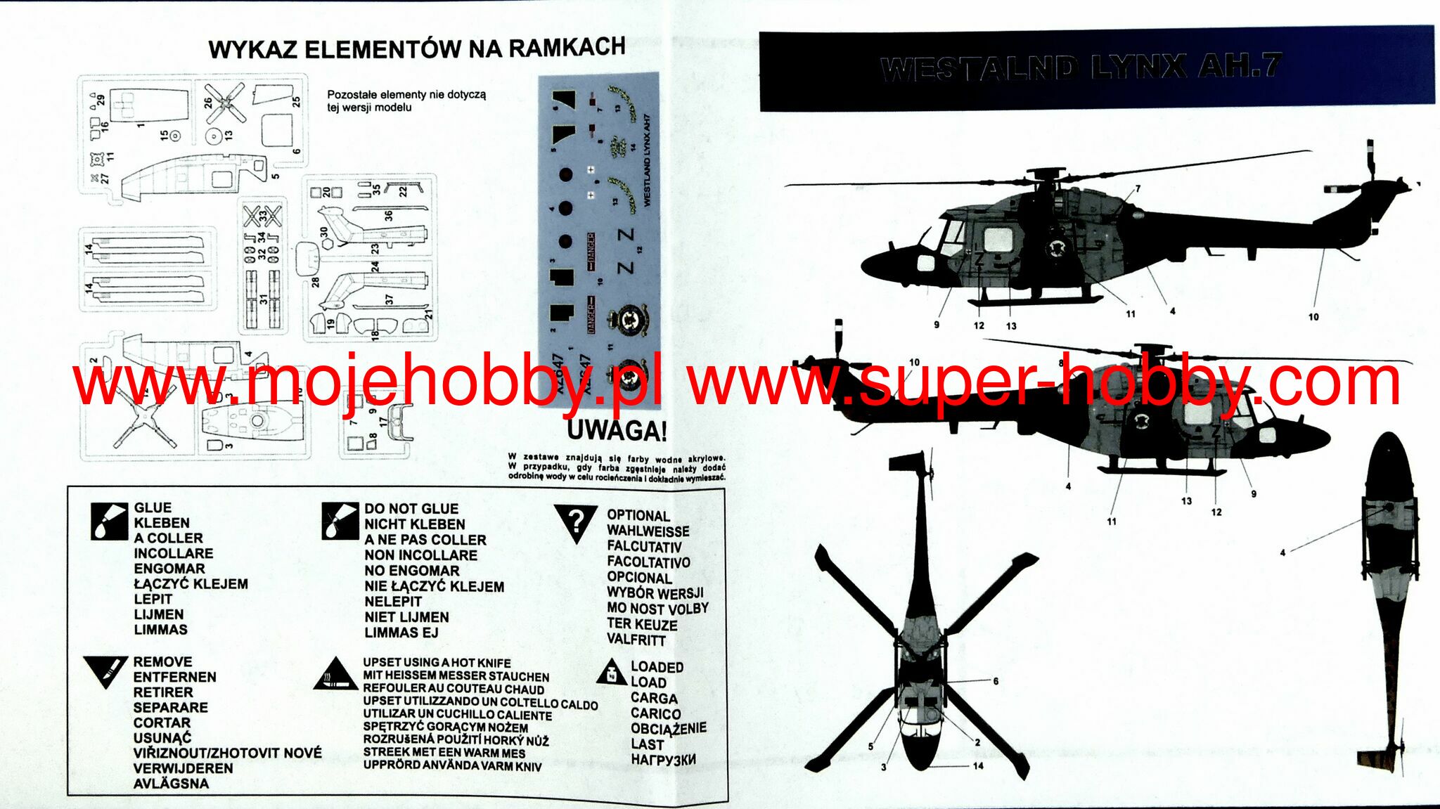 The Westland Lynx is a British-made multipurpose helicopter of full metal construction with a fixed undercarriage, in a classic layout with a main rotor and a tail rotor on the beam. The drive is provided by two Rolls-Royce 42-1 turboshaft engines with a capacity of 1015 HP each. The first prototype flew in 1971, and serial production started in 1978 and is still ongoing. By 2009, approximately 450 helicopters of this type had been manufactured. The machine was also manufactured under license in France by Aerospatiale. The Westland Lynx was created to replace the Westland Scout and Westland Wasp helicopters. When designing it, particular emphasis was placed on the high reliability of the entire machine, good performance, and efforts to maintain high susceptibility to modernization. These goals have been achieved. In the course of serial production, two main development versions of the helicopter were created: the first, designated as Lynx AH.1, was dedicated to the military aviation of the army and was used as a transport and anti-tank helicopter. There were also several versions of it, such as the Lynx AH.7 with a fuselage and rotor made to a greater extent from composites and with richer avionics. The second major version was designated as Lynx HAS.1 - it served as an anti-submarine helicopter (ZOP) and a search and rescue machine. This version has also undergone numerous modifications and has been revised several times, eg HAS.3. Westland Lynx helicopters successfully participated in many armed conflicts, including the Falklands War (1982) or in both wars with Iraq (1990-1991 and 2003). They were also exported to several countries, including Brazil, Denmark and Germany.