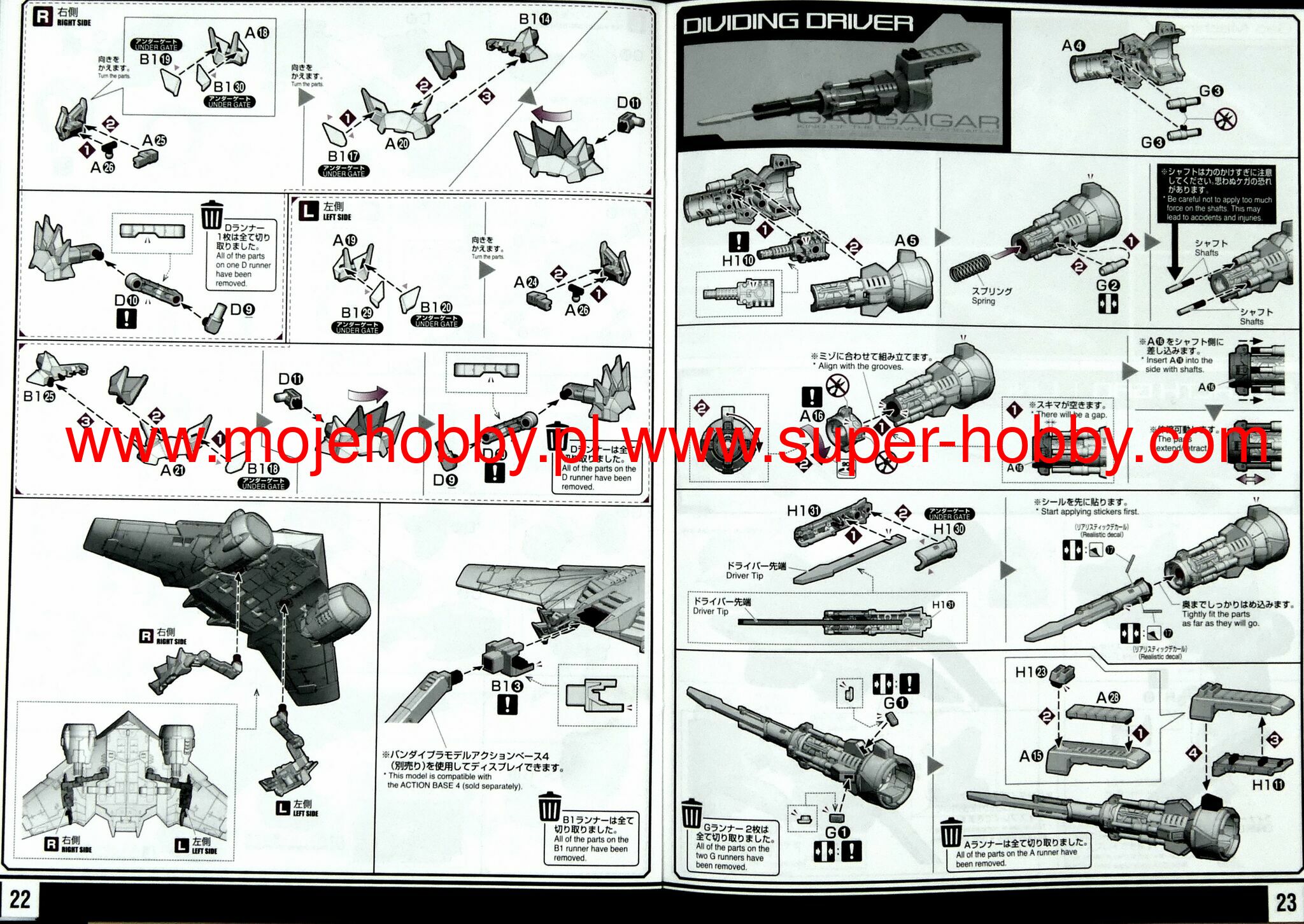 RG-Real Grade In July 2010, Bandai introduced the 1:144 scale Real Grade series as part of the 30th anniversary of the "Gundam 30th Anniversary" series. The series is characterized by elements and construction from the MG and PG series. It has an internal skeletal frame and has a greater range of motion than the HG series. Assembly difficulty level: Intermediate Number of elements: over 250+ Size: 13cm Contents of the package GUNPLA Model Assembly instructions Short instruction manual in Polish Stand* Stickers to enhance the model *Not all models include a stand Special features of the RG series: Scale 1/144, model size 130 mm, more than 250 elements to assemble, medium level.