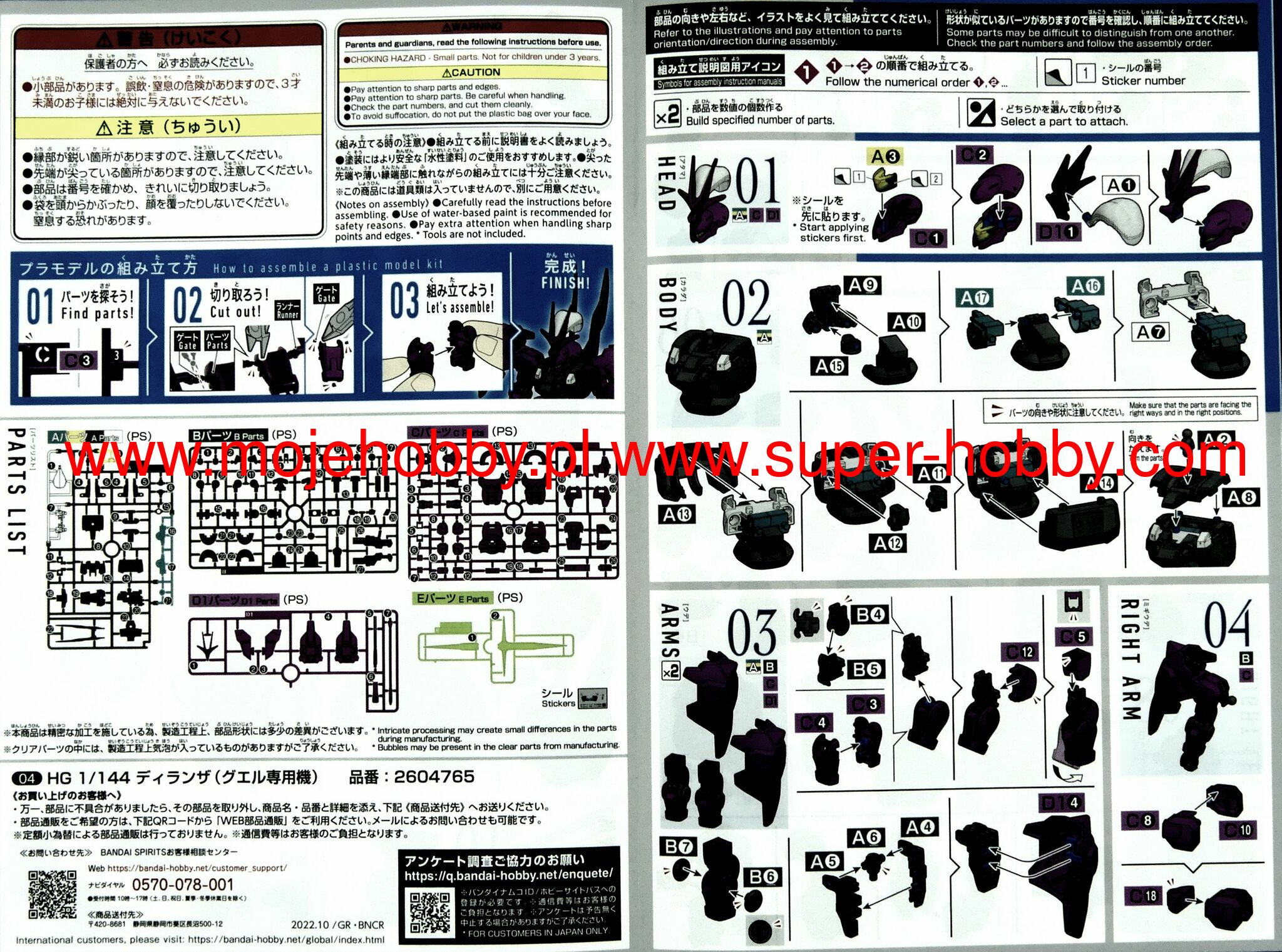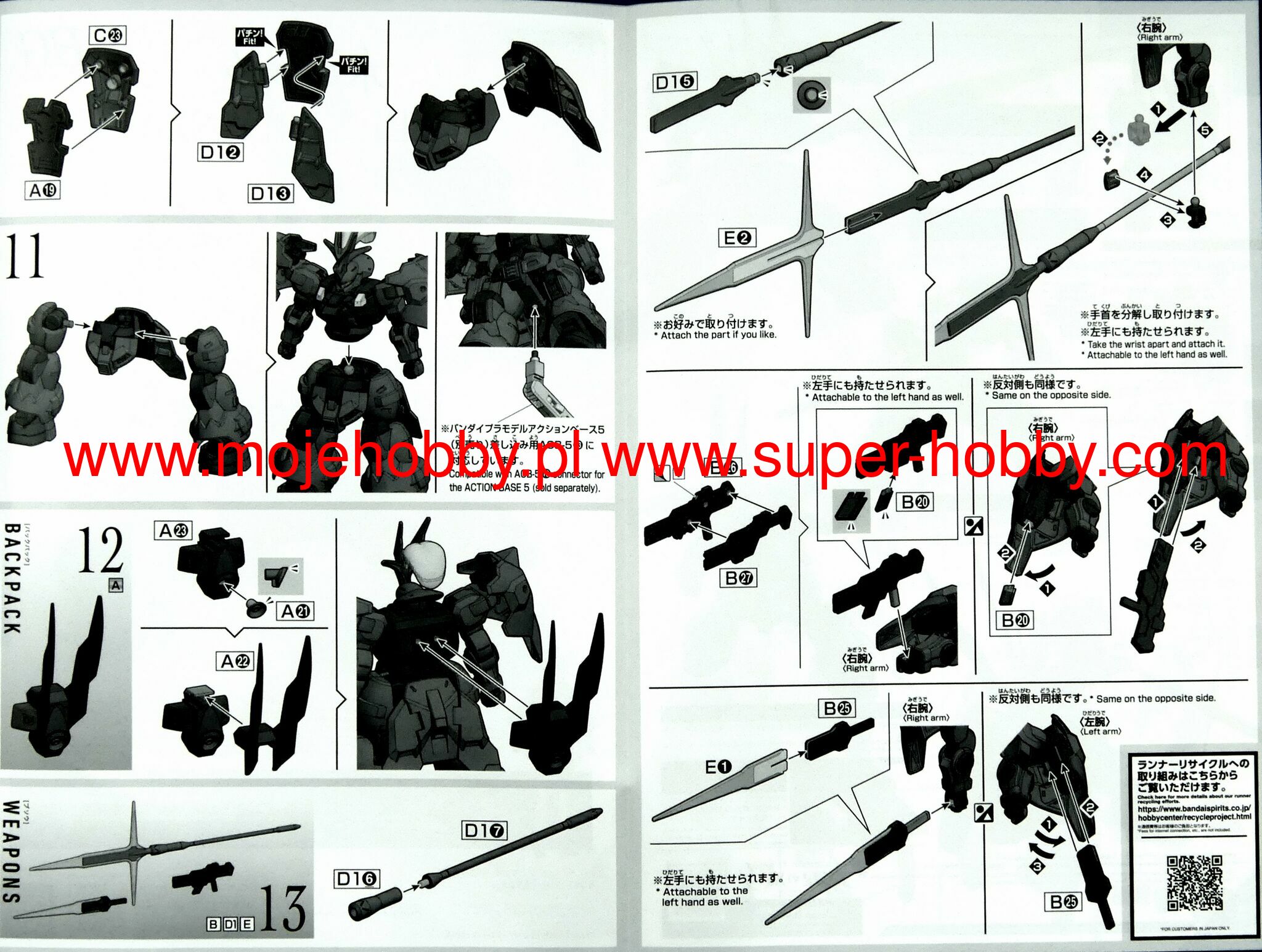 HG - High Grade Models presented in 1990 in 1:144 scale. These were groundbreaking models in the series because their quality was significantly improved compared to previous models and they had a full range of movements. Assembly Difficulty: Medium Number of elements: over 150+ Size: 13cm Contents of the package GUNPLA Model Assembly instructions Short instruction manual in Polish Stand* Stickers to enhance the model *Not all models include a stand Special features of the HG series: Scale 1/144, model size 130 mm, over 150 elements to assemble, medium level.