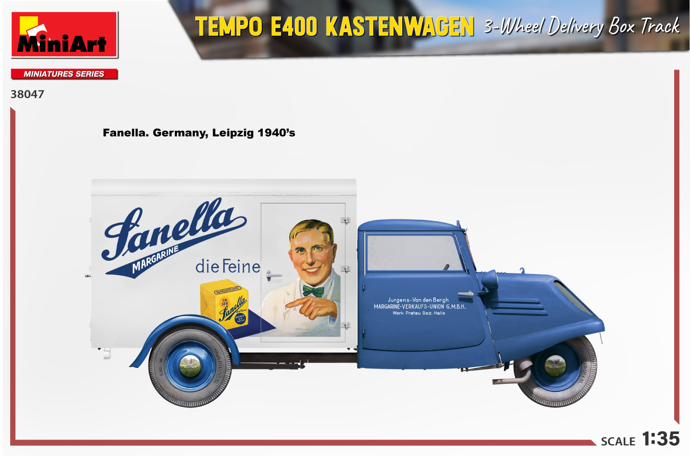MINIART ТРЕХКОЛЕСНЫЙ ГРУЗОВИК TEMPO E400 KASTENWAGEN (1/35) продается в 2 магазинах. Выберите подходящий Вам интернет-магазин и перейдите по ссылке «В магазин».