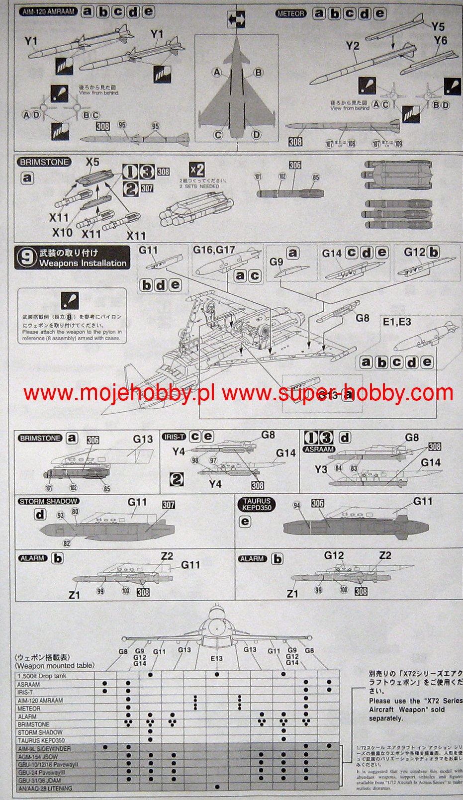 Eurofighter Typhoon or EF-2000 is a project of a consortium composed of three concerns: Alenai Aeronautica, BAE Systems and EADS. The four-nation Eurofighter is a delta low wing design with a duck front tail. Its primary task is to conduct aerial combat and attack from beyond sight. It can also attack ground targets. Eurofighter is characterized by high maneuverability in supersonic flights. Modern engines allow it to fly at supersonic speed without the use of an afterburner. The Typhoon is armed with an internal 27mm Mauser BK27 cannon. On thirteen under-wing (4 + 4) and under-fuselage (5) nodes, BVRAAM (Air-to-Air Rocket, attacking out of sight), ASRAAM (Air-to-Air Advanced Rocket), Storm missiles (air-to-ground) can be attached. Shadow or Taurus. The Typhoon arsenal also includes the Brimstone and DWS 37 air-to-ground missiles as well as laser beam bombs (laser target designator required). The on-board weapons control system monitors, tests and launches the arsenal attached under the wings. The EF-2000 target is an integrated electromagnetic emission detection and interference system (ESM / ECM) called DASS, it consists of active interfering heads, emission-detecting antennas, front and rear warning stations (RWR) and a thermal (flare) and radar (flare) launcher system ( dipoles). Detection / tracking is performed (similarly to the Russian MiG-29) by two systems. The first is a forward-facing thermal sensor (FLIR) that works in conjunction with the IRST thermal detection and tracking system. The second pair of eyes is, of course, the multitask Doppler radar ECR 90, operating in the X-band. It is built by the Euroradar consortium consisting of the British company Marconi Electronic Systems, ENOSA from Spain, FIAR from Italy and Daimler Chrysler Aerospace (DASA) from Germany. The Eurofighter pilot sits in a cockpit equipped with voice control. Additionally, there are approximately 25 control buttons on the throttle and stick. Information is presented on the MHUD multifunctional reflective display and the three MHDD color multifunction displays on the console. It is complemented by the HMS helmet-mounted presentation system. Martin Baker Mk16A type 0-0 ejection chair was used. As the aircraft is statically unstable, the on-board computer is directly controlled by the control surfaces and airfoil mechanization via a digital fly-by-wire system. The EFA is powered by two Eurojet EJ200 twin-flow jet engines, each delivering 60 kN of thrust, and 90 kN of afterburners each. The motors are digitally controlled. Technical data: Maximum speed: 2,124 km / h, speed of climb: 315 m / s, maximum ceiling 19,812 m, maximum range: 3,790 km, armament: fixed - 1 Mauser cannon, caliber 27 mm, suspended - up to 7,500 kg.