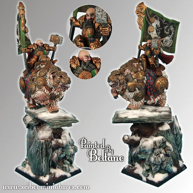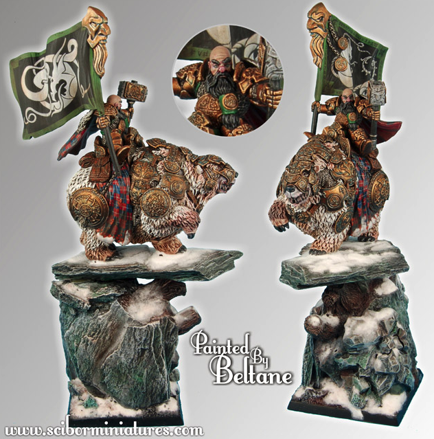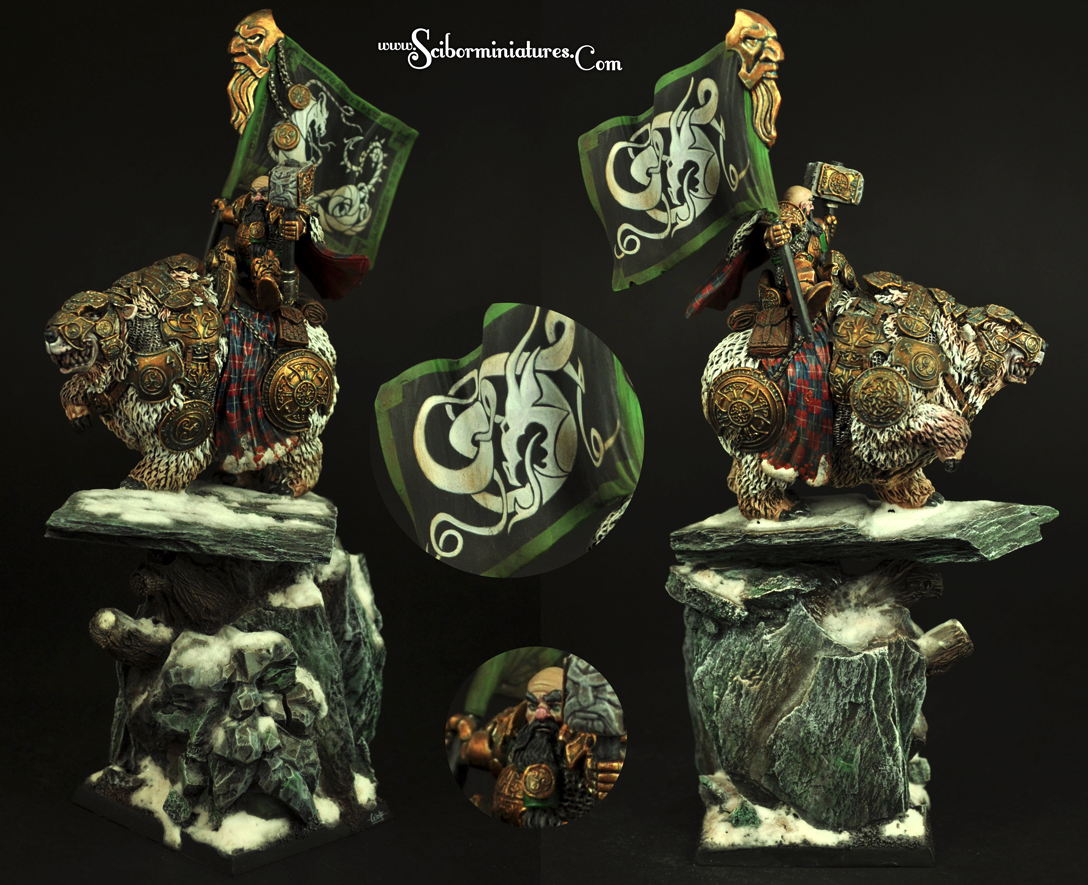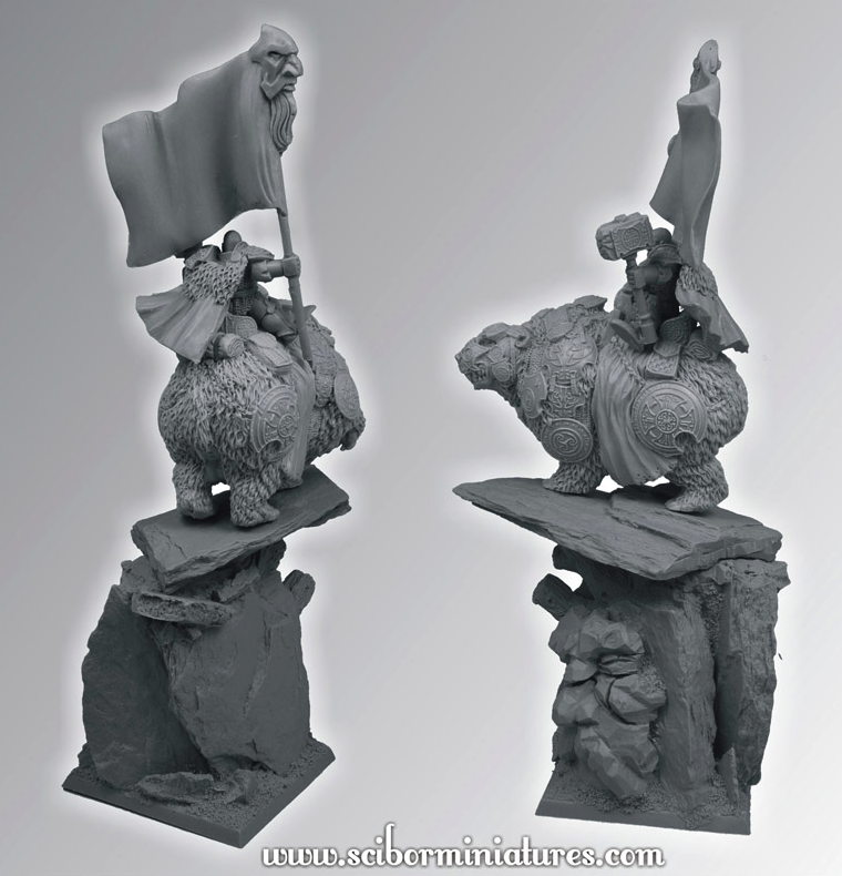 28FM0065 DWARF GENERAL WITH STANDARD ON WAR BEAR