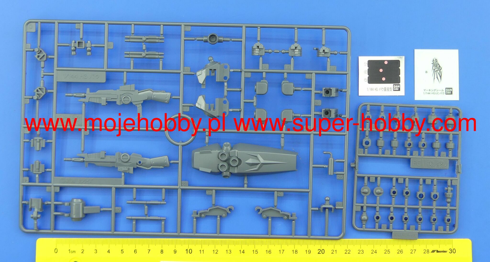 HG - High Grade Models presented in 1990 in 1:144 scale. These were groundbreaking models in the series because their quality was significantly improved compared to previous models and they had a full range of movements. Assembly Difficulty: Medium Number of elements: over 150+ Size: 13cm Contents of the package GUNPLA Model Assembly instructions Short instruction manual in Polish Stand* Stickers to enhance the model *Not all models include a stand Special features of the HG series: Scale 1/144, model size 130 mm, over 150 elements to assemble, medium level.