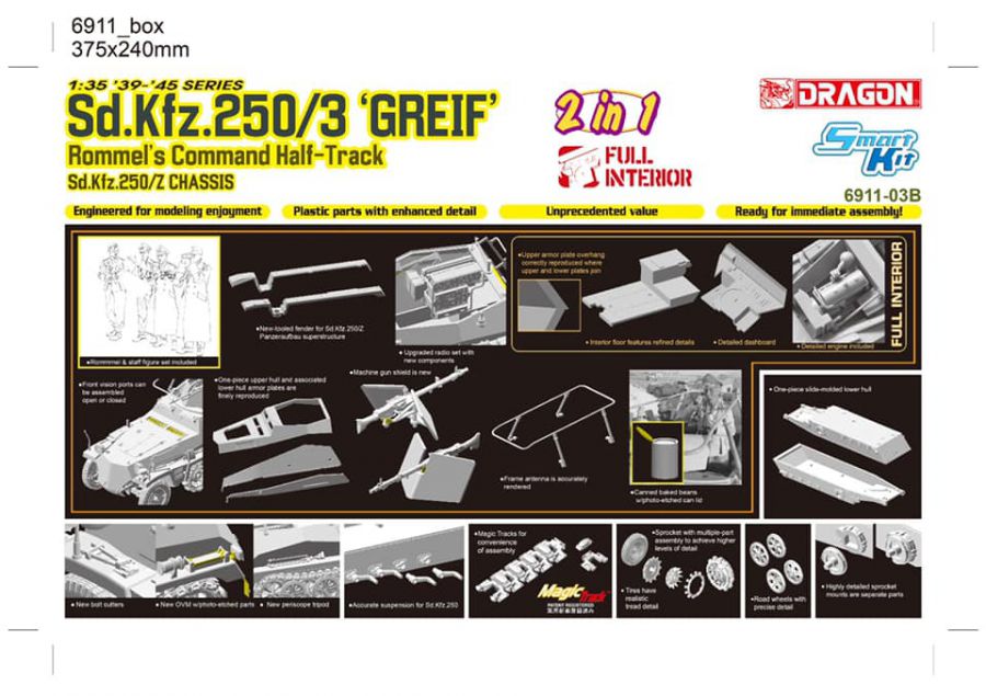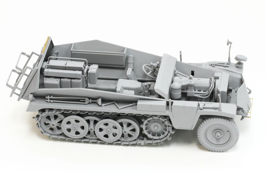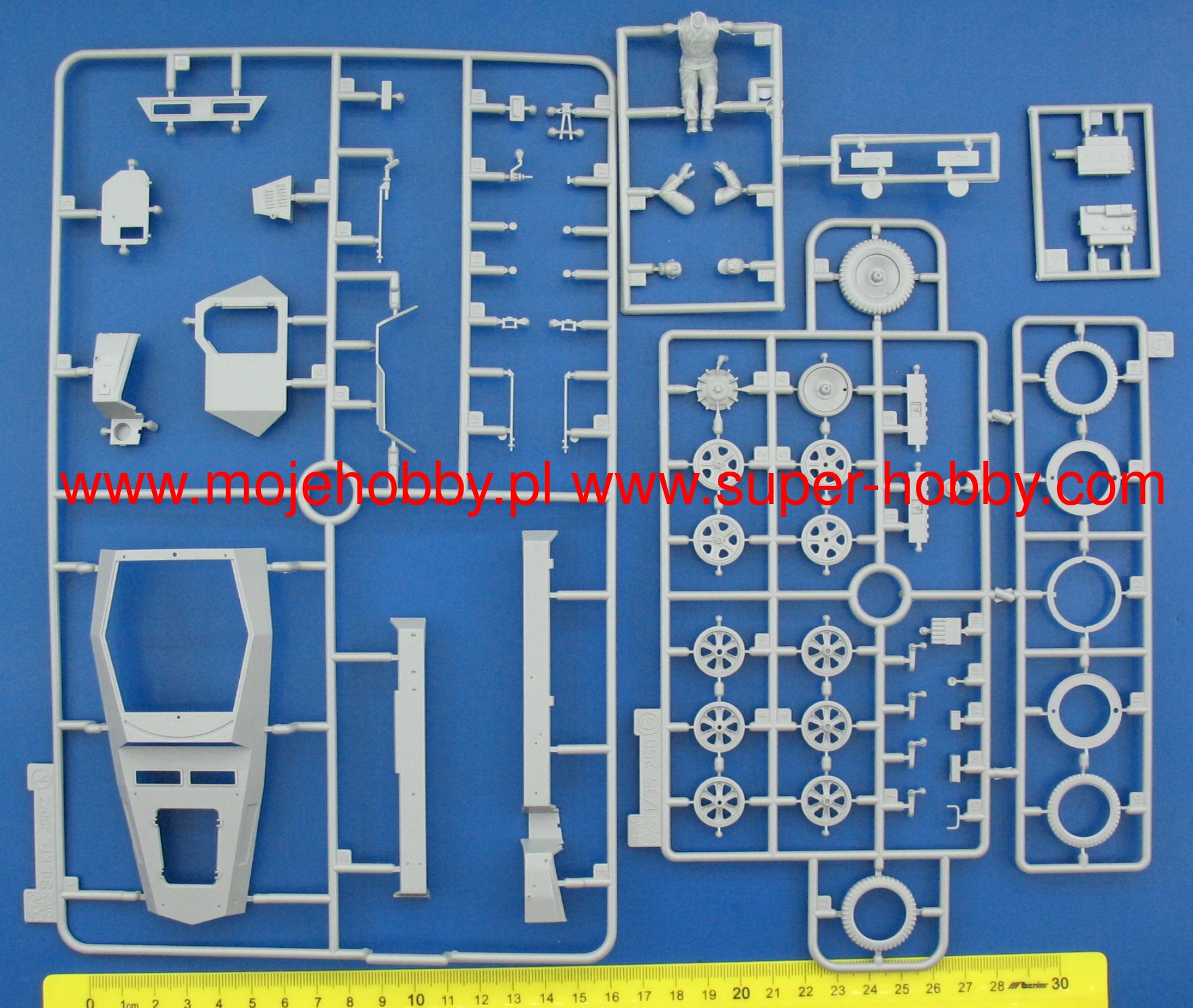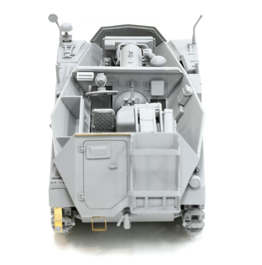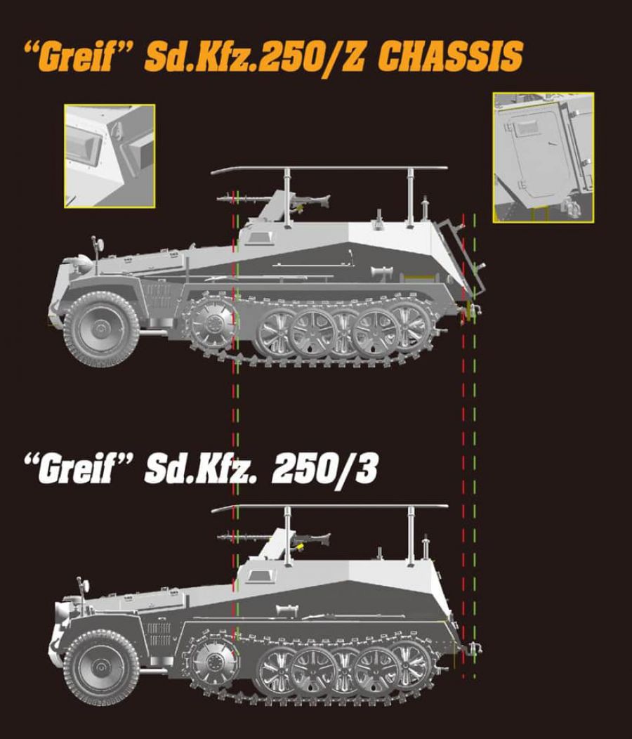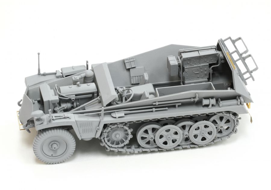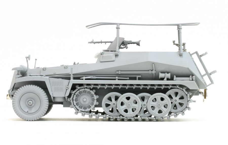 Sd.Kfz 250 was a German light, half-track armored transport from the Second World War. The first prototypes of the vehicle were created in 1939, and serial production continued in the period 1940-1944, ending with the production of about 6,700 units. The Sd.Kfz 250 was powered by a six-cylinder engine Maybach HL 42 TRKM with 100 hp . The Sd.Kfz 250 was developed as a light reconnaissance and multipurpose vehicle for the German armored divisions and panzer grenadiers. In the course of serial production, two versions of the Sd.Kfz 250 hull were created: the first (called "alt") had undercut side hull plates and a broken armor plate at the front of the hull. In 1943, the "neu" version was introduced, which was simplified: the hull sides were flat, as was the armor plate on the front of the car. During the Second World War, several variants and versions of the Sd.Kfz 250 were created. The first chronological version was the Sd.Kfz 250/1, which was the basic version and could function as a light infantry transporter or reconnaissance vehicle. Later, the Sd.Kfz 250/3 version appeared, which was a command version with a long-range loop antenna and a long-range radio. Later, a version armed with an 80 mm mortar (Sd.Kfz 250/7), a 28 mm anti-tank gun (Sd.Kfz 250/11) or a reconnaissance vehicle with a 20 mm cannon in a rotating turret (Sd. Kfz 250/9). Cars Sd.Kfz 250 of all versions were used primarily in armored divisions and armored grenadiers on virtually all fronts of World War II.