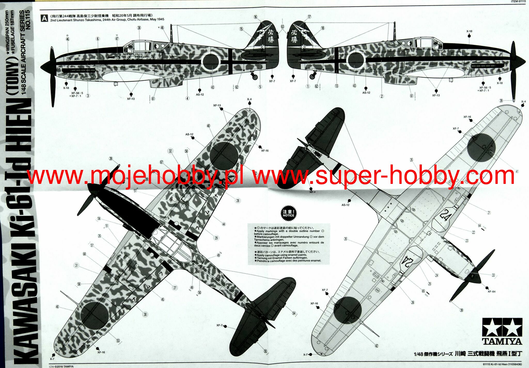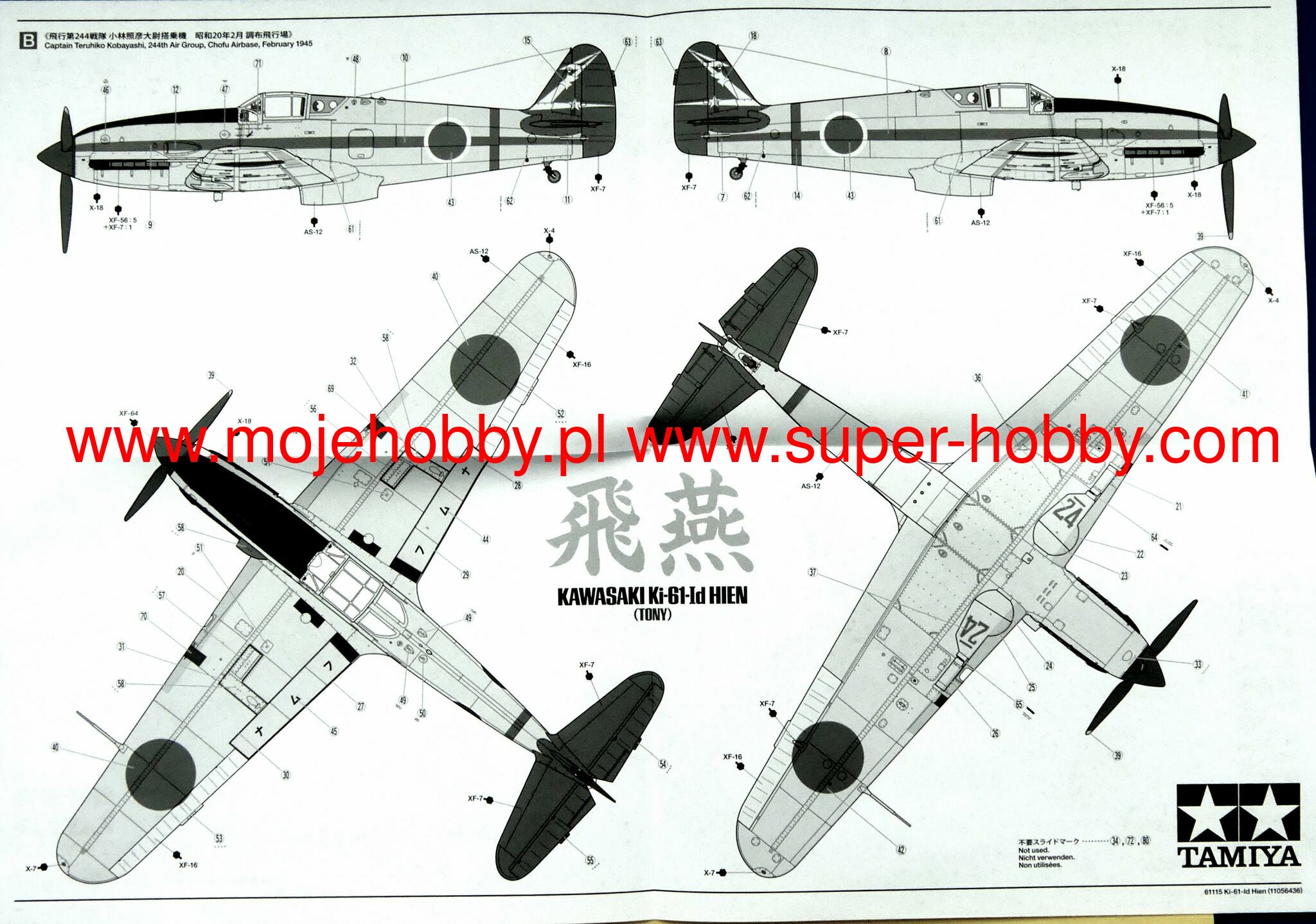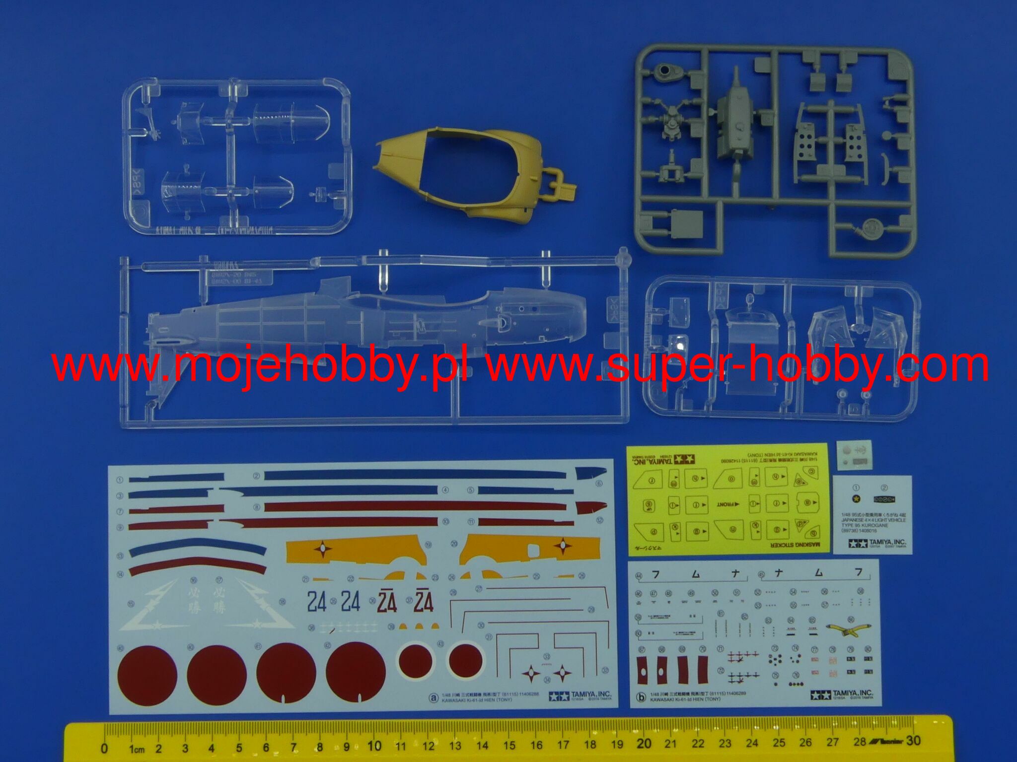 Kawasaki Ki-61 Hien (Japanese flying swallow) is a Japanese, single-engine, metal low wing fighter with a classic tail from the Second World War. The prototype's flight was nice in December 1941, and the first planes reached the line units in February 1943. The heart of the aircraft was the Kawasaki Ha-40 or Ha-140 engine, that is, a liquid-cooled German Daimler-Benz DB 601A built under license. The Ki-61 surprised the Allied forces during the fighting in New Guinea in June 1943, where it was taken as a copy of the German Messerschmitt Me-109, later suspected to be a copy of the Italian Macchi C202 or other Italian fighter. For this reason, he was given the nickname "Antonio" or "Tony". During the fights in 1943, Ki-61 fighters demonstrated their considerable advantage over American machines, such as the F-4 Wildcat. The Ki-61 later fought over the skies of New Britain and New Ireland, and in 1944 they were used in combat in the Philippines. Later they were used to defend the Japanese islands. Some of them have become kamikaze planes. The Ki-61 was undoubtedly a very good fighter, but its Achilles' heel was limited in series production due to problems with the engines. Technical data (version Ki-61-I): length: 8.94m, wingspan: 12m, height: 3.7m, maximum speed: 580km / h, rate of climb: 15.2m / s, maximum range: 580km, ceiling maximum 11,600m, armament: fixed - 2 12.7mm Ho-103 machine guns and 2 20mm Ho-5 cannons, suspended - up to 500 kg of bombs.The Kurogane Type 95 is a Japanese military passenger all-terrain vehicle from the Second World War. The first copies of this vehicle appeared in the mid-1930s, and serial production continued in 1936-1944. Approximately 4,800 cars of this type were built in its course. The vehicle was powered by a 33 HP 2-cylinder engine. The Japanese army saw the necessity to have a light all-terrain vehicle in the course of the so-called the Mukden Incident of 1931. Development work on the new vehicle took a long time, but the result was a highly refined design. The Kurogane Type 95 was characterized by low weight, great off-road properties, all-wheel drive (actually - on both axles) and was adapted to operate in winter conditions. It is worth noting that it was the only car developed from scratch for the needs of the Japanese army. The car was used until the end of the war in 1945, among others by the Kwantung Army stationed in Manchuria.