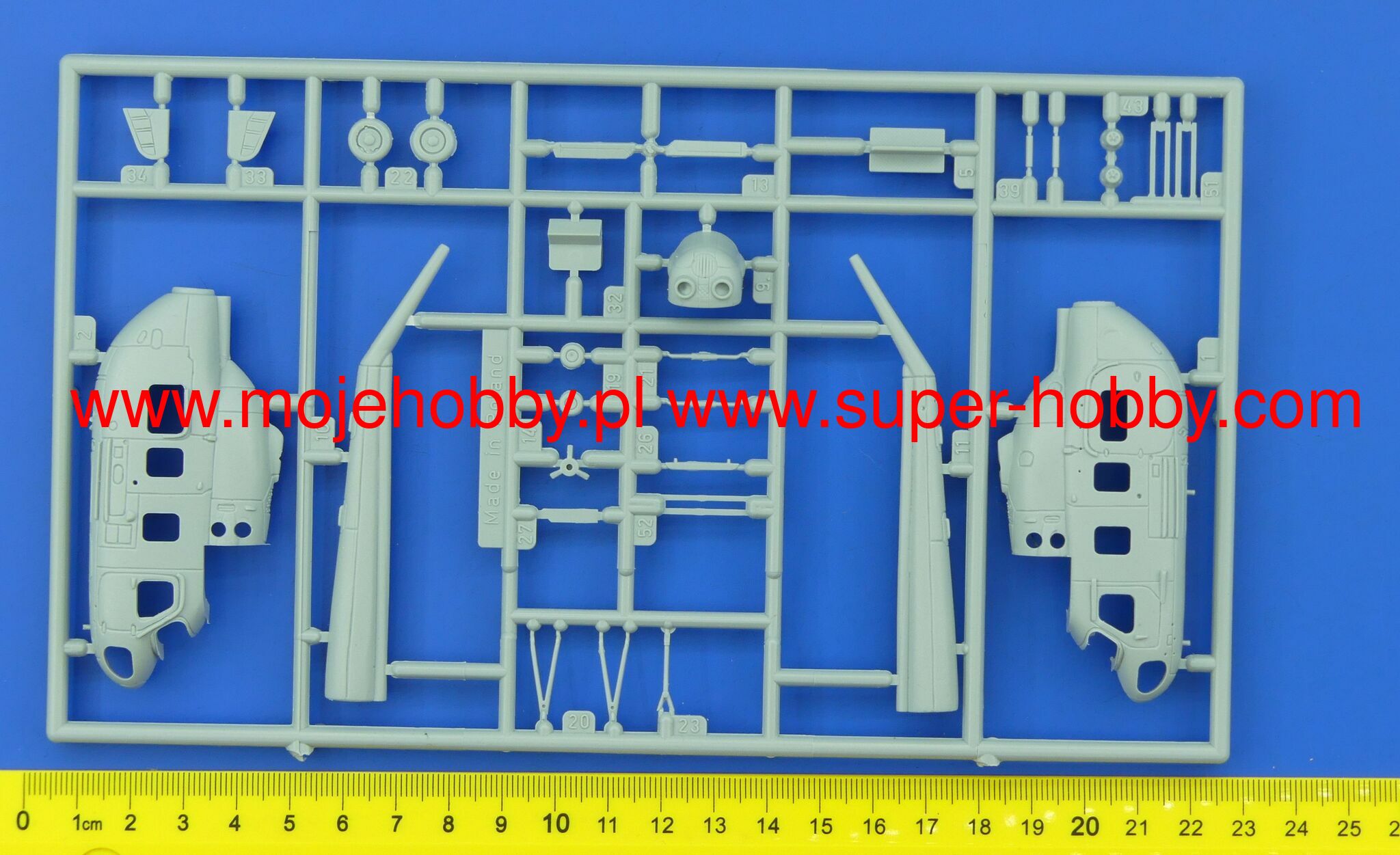 The Mil Mi-2 was a medium, multi-role helicopter designed by the Mil design office and mass-produced in Świdnik. The machine had a full metal, half-shell structure with a fixed undercarriage, in a classic arrangement with a main rotor and a tail rotor on the beam. The drive was provided by two GTD-350 engines of different versions with a power of 400-450 HP each. The flight of the first prototype took place in September 1961, and serial production lasted from 1965 to 1985. It is estimated that approximately 5,500 copies of this popular helicopter were built! It is worth noting that the Polish plants in Świdnik purchased only the documentation for the Mi-2 prototype machine from the Mil plants, and they were responsible for the successful implementation of serial production and the development of documentation intended for such production. Several upgrades to the basic version were made. The first was the Mi-2T version: it had a slightly higher lifting capacity and an electric crane. In 1968, the Mi-2R model was developed, which was an agricultural version intended for large-scale spraying. In 1972, the Mi-2SR version was created, i.e. the medical-rescue version. The very successful Mi-2 was widely exported to the Warsaw Pact countries, but also to Peru and Mexico, for example. He took part in the war in Afghanistan (1979-1989) and during the fight against the Chernobyl disaster in 1986.