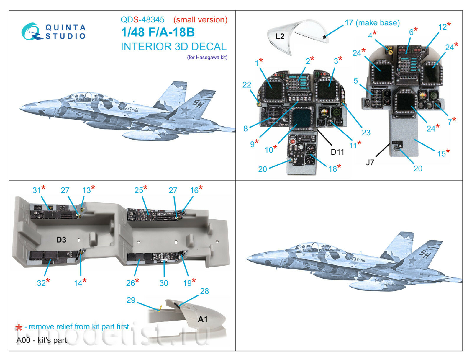 Купить QDS-48345 QUINTA STUDIO 1/48 3D ДЕКАЛЬ ИНТЕРЬЕРА КАБИНЫ F/A-18B (HASEGAWA) (МАЛАЯ ВЕРСИЯ) (1/48)