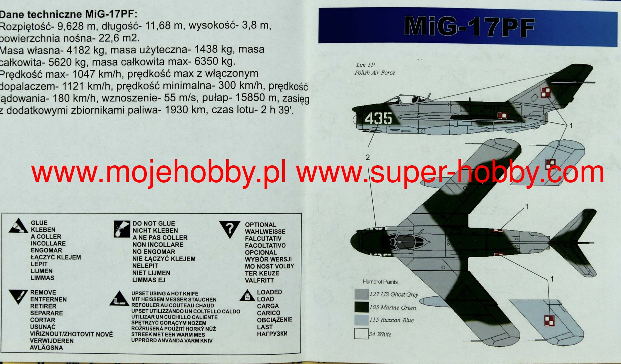 The Mikojan-Guriewicz MIG-17 is a Soviet, single-engine, medium-wing metal jet fighter with slanted wings and a classic tail, known in the NATO code as Fresco. The prototype flight took place in January 1950. The MIG-17 was an extension of the MIG-15 design. The changes focused on a new engine (Klimov WK-1F), better aerodynamics and the use of radar on one of the development versions. Several basic versions of this aircraft were created. The first mass-produced version is the MiG-17F. Another one, equipped with a radar, was the MiG-17PF, and the MiG-17PFU version had the option of guiding the missiles using the on-board radar. The plane was also produced under the license of min. in Poland and China. In Poland, serial production started in 1956 under the designation Lim-5, and an assault version (Lim-6bis) was also created. The MIG-17 aircraft is still used by the Mali and North Korean aviation. Technical data (MIG-17F version): length: 11.26m, wingspan: 9.63m, height: 3.8m, maximum speed: 1145km / h, rate of climb: 65m / s, maximum range: 2060km, maximum ceiling 16600m armament: fixed - 2 Nudelman-Rikhter NR-23 cannons, caliber 23 m and 1 Nudelman N-37 cannon, caliber 37 mm, suspended - up to 500 kg of bombs and rockets.