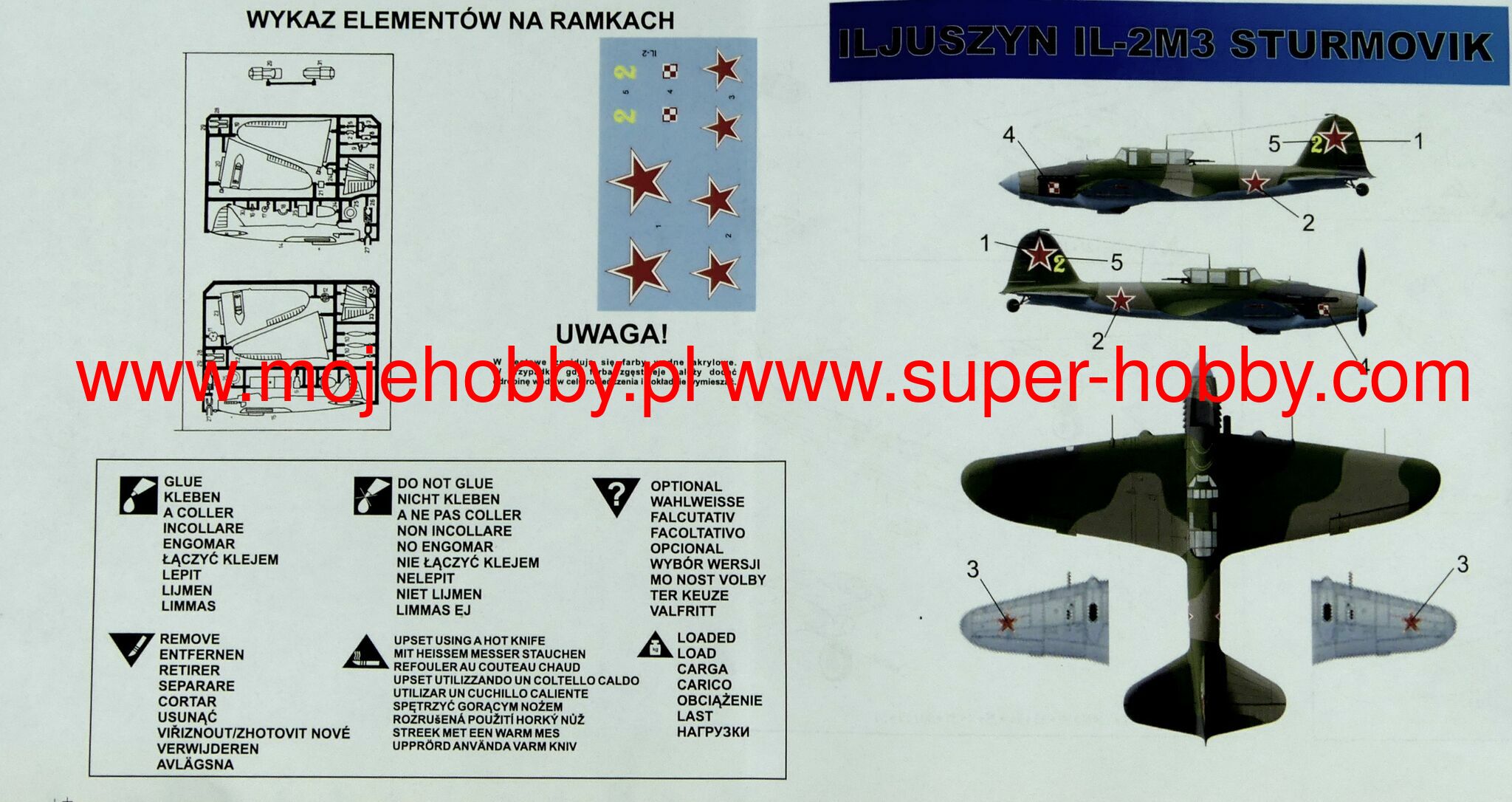 The Ilyushin Il-2 is a Soviet, single-engine low-wing and mixed structure attack aircraft with a classic tail, designed by Sergei Ilyushin from the Second World War. The flight of the prototype took place on October 2, 1939, and serial production started in 1940 and lasted until 1945. In total, as many as 36,183 copies of this great plane were created. The power unit was a 12-cylinder Mikulin AM-38 piston engine with a power of up to 1600 HP. The concept of the Il-2 aircraft was based on the desire to create a heavily armed and heavily armored attack aircraft designed to destroy the enemy's land targets and his armored vehicles. The airplanes produced in series had armor from 4 to 6mm around the engine and cockpit. The Il-2 was therefore resistant to small arms fire as well as to single hits with 20mm cannons. After improving the quality of crew training and applying new tactics, the Il-2 became an aircraft capable of wreaking havoc among the German Panzewaffe. It is no coincidence that the Germans gave him the nickname "flying death", and the designer nicknamed him "flying tank". During the war, a dozen or so versions of Ił-2 were created, the most important of which is Ił2m3. Its crew consisted of two people - a pilot and a rear gunner, the Mikulin AM-38F (1700 KM) unit was used as the engine and a self-sealing fuel tank was introduced. The aerodynamic properties were also improved. In total, 7377 machines of this version were built by 1944. Il-2 took part in all major battles on the Eastern Front - from Moscow (1941) through Stalingrad and Kursk (1942/1943), until the Berlin Operation in 1945. Technical data (version Ił-2 mod.1942): length: 11.65m, wingspan: 14.6m, maximum speed: 426km / h, practical range: 740km, practical ceiling 6200m, armament: permanent - 2 WJ cannons cal. 23mm, 2 x 7.62mm SzKAS machine guns, underslung-8 RS-82 / RS-132 unguided missiles, up to 400 kg of bombs.