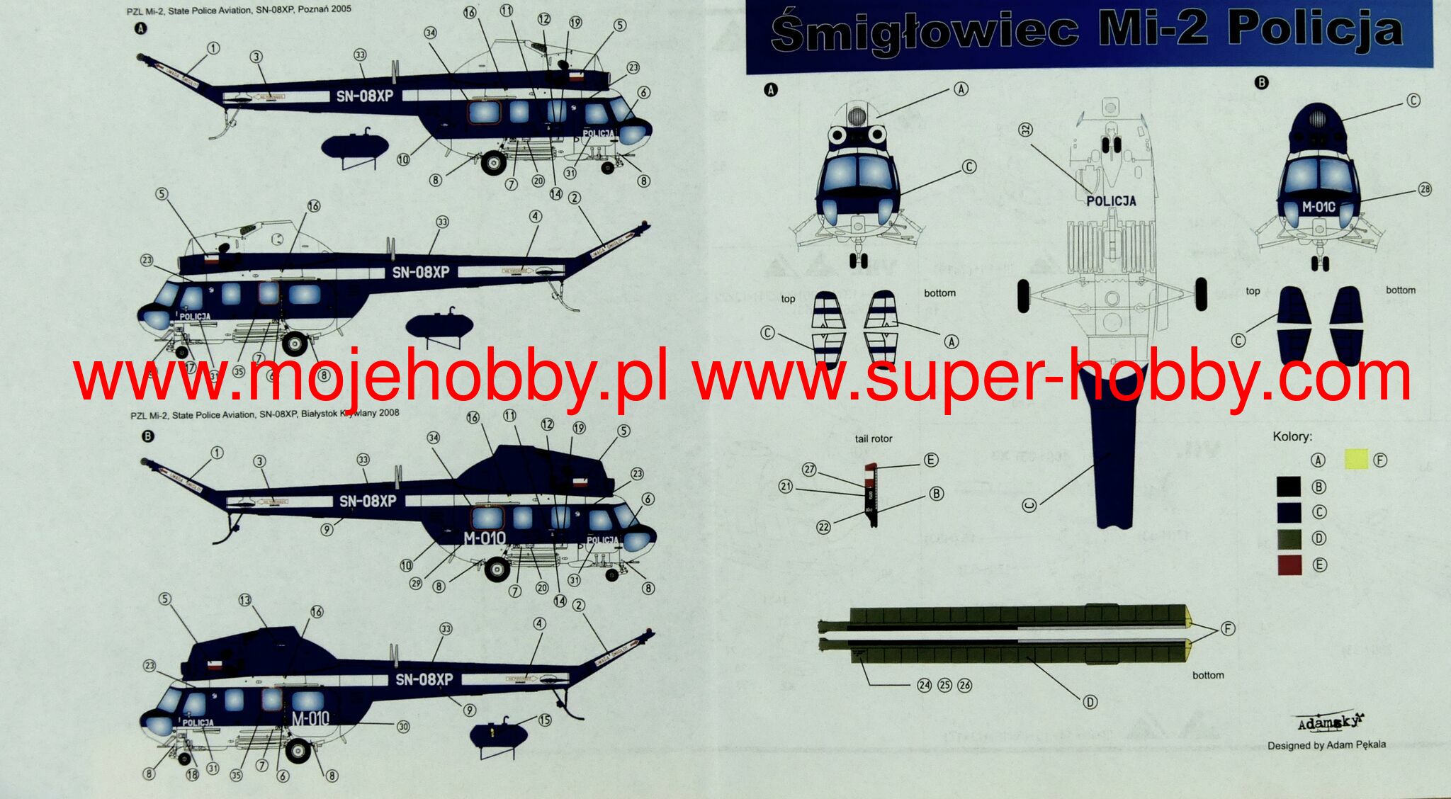 The Mil Mi-2 was a medium, multi-role helicopter designed by the Mil design office and mass-produced in Świdnik. The machine had a full metal, half-shell structure with a fixed undercarriage, in a classic arrangement with a main rotor and a tail rotor on the beam. The drive was provided by two GTD-350 engines of different versions with a power of 400-450 HP each. The flight of the first prototype took place in September 1961, and serial production lasted from 1965 to 1985. It is estimated that approximately 5,500 copies of this popular helicopter were built! It is worth noting that the Polish plants in Świdnik purchased only the documentation for the Mi-2 prototype machine from the Mil plants, and they were responsible for the successful implementation of serial production and the development of documentation intended for such production. Several upgrades to the basic version were made. The first was the Mi-2T version: it had a slightly higher lifting capacity and an electric crane. In 1968, the Mi-2R model was developed, which was an agricultural version intended for large-scale spraying. In 1972, the Mi-2SR version was created, i.e. the medical-rescue version. The very successful Mi-2 was widely exported to the Warsaw Pact countries, but also to Peru and Mexico, for example. He took part in the war in Afghanistan (1979-1989) and during the fight against the Chernobyl disaster in 1986.