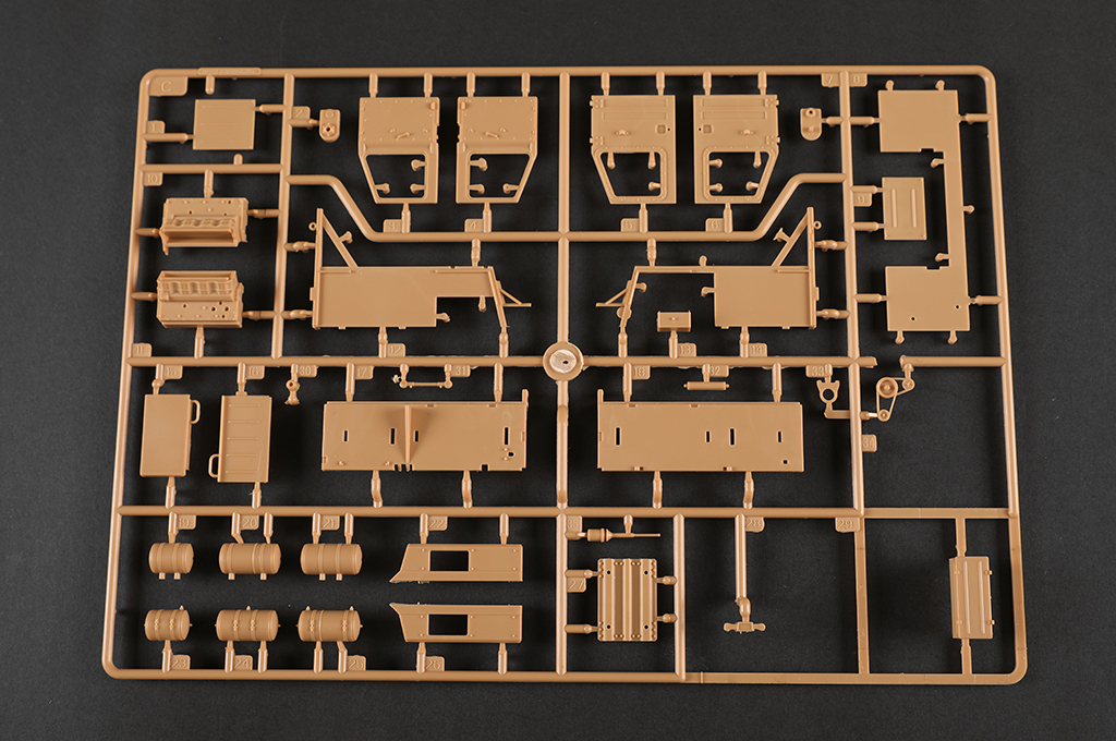 Дополнительная информация Экстерьер модели насыщен мелкой деталировкой, чередующейся с элементами базового фототравления. Детально проработана силовая рама шасси, она оснащена отдельной подсборкой в которую входят разнообразные конструктивные элементы технологического обвеса, включая топливные баки, аккумуляторные ящички и имитацию гидравлических шлангов. Мосты модели полноприводные , состоящие из множественных элементов деталей, соединенных между собой системой карданных валов. Максимально точно проработан двигатель автомобиля, он размещен на раме шасси и прикрыт сверху специальным кожухом, на котором находится фильтрационно-воздушная система Шины из резины с четким рисунком протектора и технологической маркировкой, диски цельнолитые из пластика с репродукцией ступичных крепежных болтов, дополненные быстросъёмной виниловой втулкой.