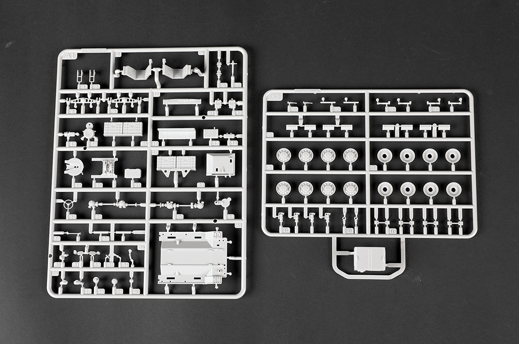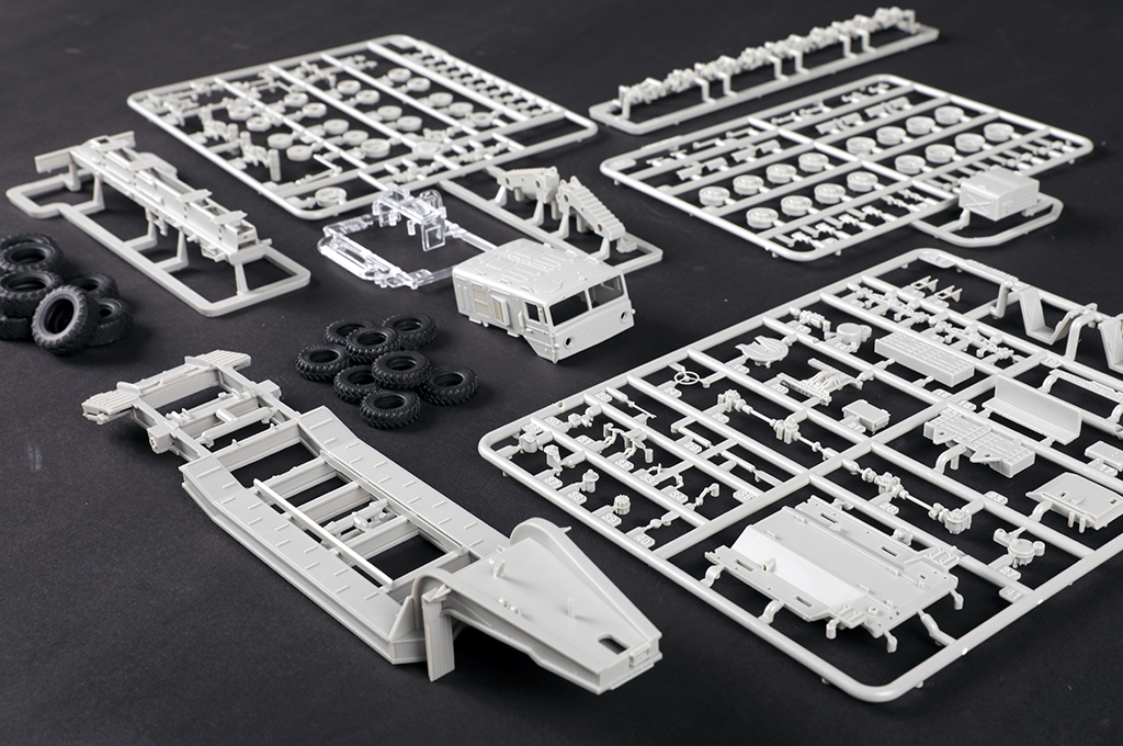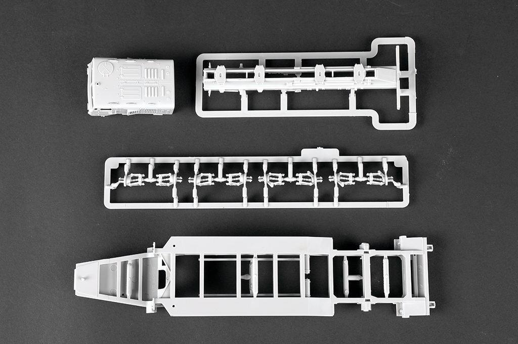 Описание Первые опытные образцы М@З-537 были построены в 1958 году, а серийное производство было запущено в 1960 году. На новой машине был установлен двигатель, развивающий 525 л.с. при 2100 об / мин - очень высокий показатель для того времени, даже у бронетранспортеров и танков мощность была значительно меньше, - и множество существенных изменений в системе подачи топлива, охлаждения и смазки, что потребовало полной модернизации крышек моторного отсека и жалюзи.Также были усилены почти все компоненты рамы и шасси, что увеличило общий вес до 21,6 тонны (общий вес брутто 87 тонн), что позволило буксировать груз весом до 50 тонн. Длина: 322мм Ширина: 46мм Всего деталей 150+ Общее количество литников 5, кабина, рама и шины