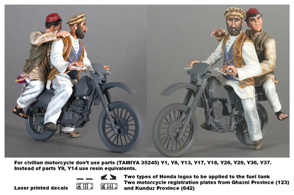DWÓCH AFGAŃCZYKÓW NA MOTOCYKLU - PKW AFGANISTAN - FIGURKI DO ZESTAWU TAMIYA 35245