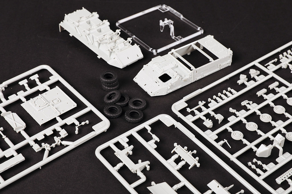Описание Stryker (рус. Страйкер) семейство колёсных 8×8/4 боевых бронированных машин производства американской компании Дженерал дайнемикс лэнд системз (General Dynamics Land Systems). Stryker создан на базе канадского бронетранспортёра LAV III, который, в свою очередь, является глубокой модернизацией швейцарского бронетранспортёра Piranha III 8x8. M1132 Engineer Squad Vehicle (ESV) инженерная машина разграждения, предназначена для очищения преград, обнаружения и обезвреживания мин. Отличительная черта, наличие ножевого минного трала (минный плуг) в передней части машины. Вооружение идентично варианту M1126 ICV. Длина: 108 мм, ширина: 32 мм Всего деталей 90+