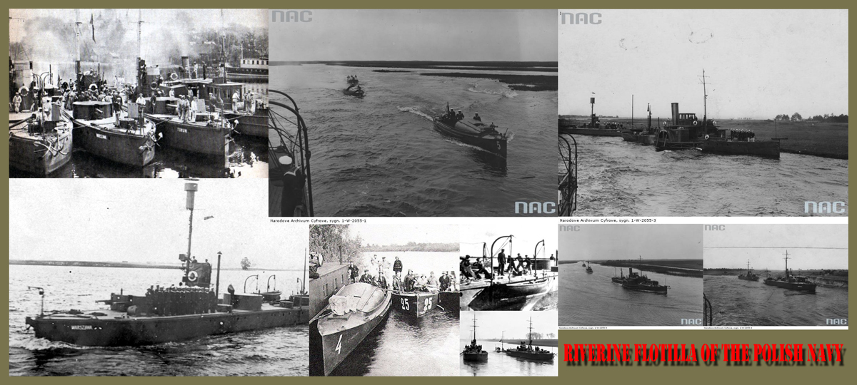 Very shortly after Poland regained independence, in April 1919, the Pinsk Flotilla was formed, which from 1931 was called the Navy River Flotilla (abbreviated as MW). This flotilla, as indicated by its second name, which is organisationally subject to the Polish Navy, was responsible for patrol and surveillance activities as well as cooperation with land forces in the eastern borderlands of the Second Polish Republic, and more specifically on the Pripyat, Pina and Strumień rivers. The flotilla actively participated in the Polish-Bolshevik war (1919-1939), taking part in the conquest of Mazyr, and later in the Kiev expedition (1920). However, in August 1920, in the face of the impending Soviet offensive, the Flotilla was disbanded, but was reactivated for service in 1922. Three years later, it became the only river flotilla in the Polish Navy. The main base of the flotilla was Pinsk, where there were flotilla barracks, all administrative buildings, a port of things and - in the years 1928-1937 - a seaplane base. In 1939, the Flotilla consisted of the headquarters, three combat squadrons, a mine and gas department, a communications department, a technical emergency service and the administration of the naval port in Pinsk. The flotilla took part in the battles of the September campaign, but during the campaign, the crews of the ships sank virtually all of its units so that they would not fall into enemy hands.