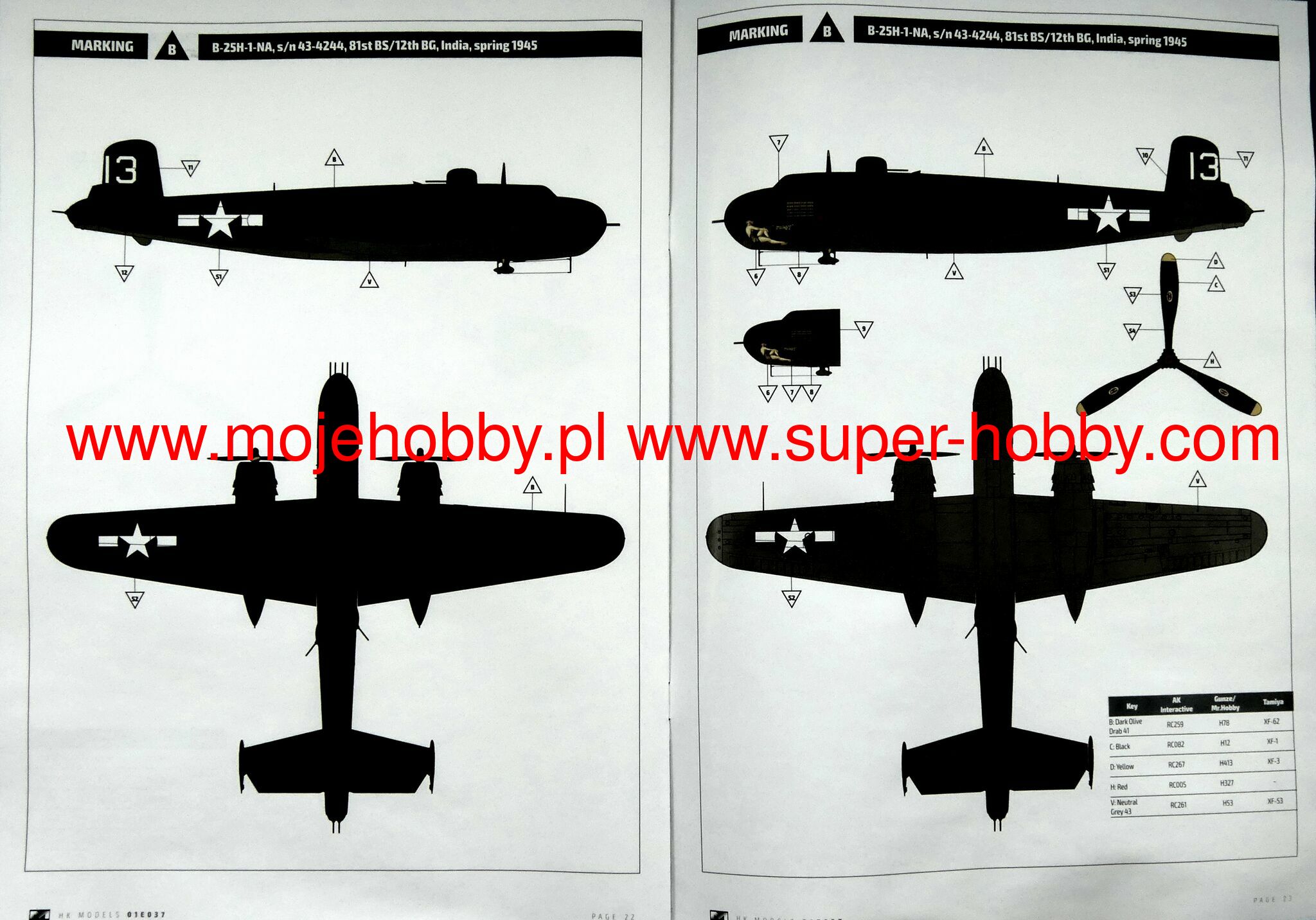 The North American B-25 Mitchell is an American medium bomber from the Second World War. The B-25 is a high-wing, all-metal structure with a retractable three-point landing gear and a double tail tail. The propulsion was two Wright Cyclon engines with the power from 1300KM to 1850KM, depending on the version. The flight of the prototype took place in 1940, and a year later mass production started. During the war, numerous versions of this bomber were produced, including B-25G (with a 75mm gun in the bow of the hull), B-25H (with a 75mm gun and 6 machine guns in the bow of the machine) and the B-25J (with 8 machine guns of 12.7mm in the bow of the fuselage). B-25 planes fought mainly in the Pacific and the Mediterranean basin. A number of them were handed over to Great Britain and the USSR under the lend-and-lease agreement, where they made their combat debut at Stalingrad. From 1943, the Polish 305 squadron flew on the B-25. The B-25 was famous primarily for its daring brave bomb attack on Tokyo in April 1942 (the famous Doolittle raid). Technical data: Maximum speed: 442 km / h, speed of climb: 4 m / s, maximum ceiling 7,600 m, maximum range: 4,300 km, armament: permanent - depending on the version, from 4 to 12 12.7mm Browning machine guns or combination of the 75 mm and km guns. suspended - up to 2700 kg of bombs.