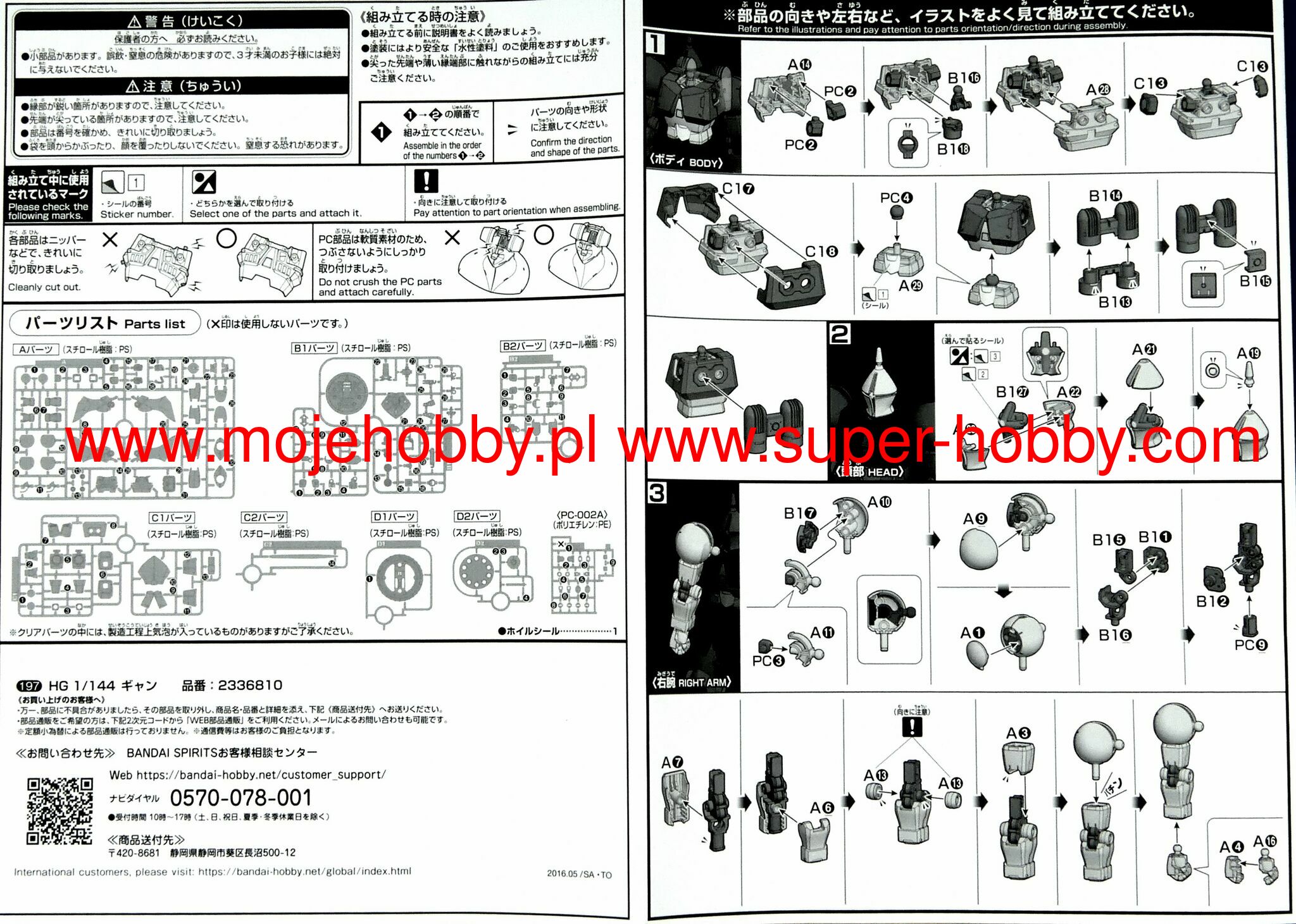 HG - High Grade Models presented in 1990 in 1:144 scale. These were groundbreaking models in the series because their quality was significantly improved compared to previous models and they had a full range of movements. Assembly Difficulty: Medium Number of elements: over 150+ Size: 13cm Contents of the package GUNPLA Model Assembly instructions Short instruction manual in Polish Stand* Stickers to enhance the model *Not all models include a stand Special features of the HG series: Scale 1/144, model size 130 mm, over 150 elements to assemble, medium level.
