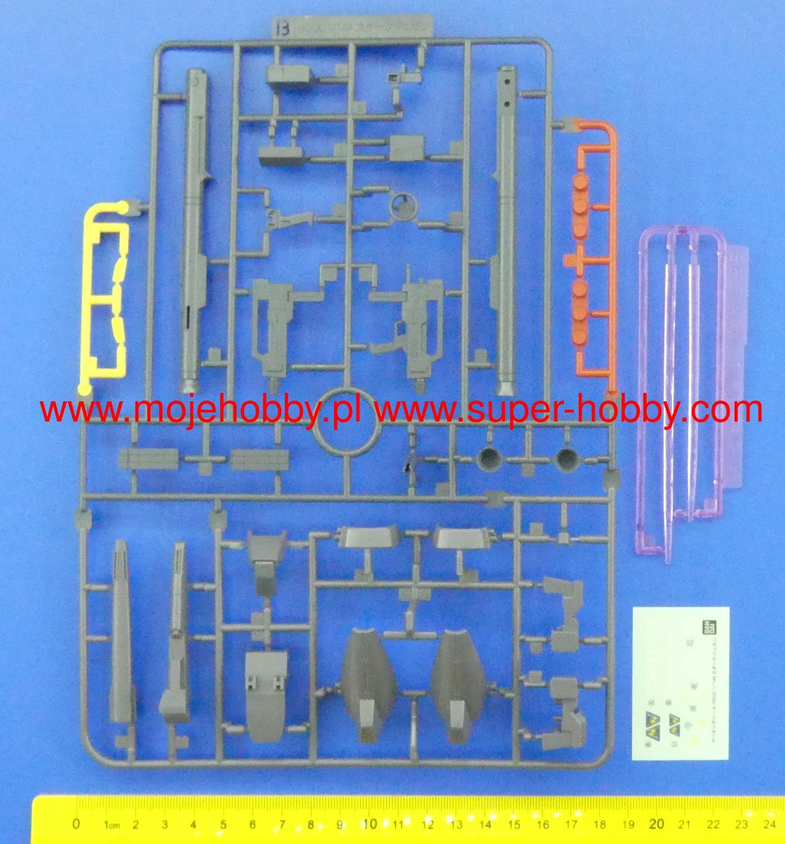 HG - High Grade Models presented in 1990 in 1:144 scale. These were groundbreaking models in the series because their quality was significantly improved compared to previous models and they had a full range of movements. Assembly Difficulty: Medium Number of elements: over 150+ Size: 13cm Contents of the package GUNPLA Model Assembly instructions Short instruction manual in Polish Stand* Stickers to enhance the model *Not all models include a stand Special features of the HG series: Scale 1/144, model size 130 mm, over 150 elements to assemble, medium level.