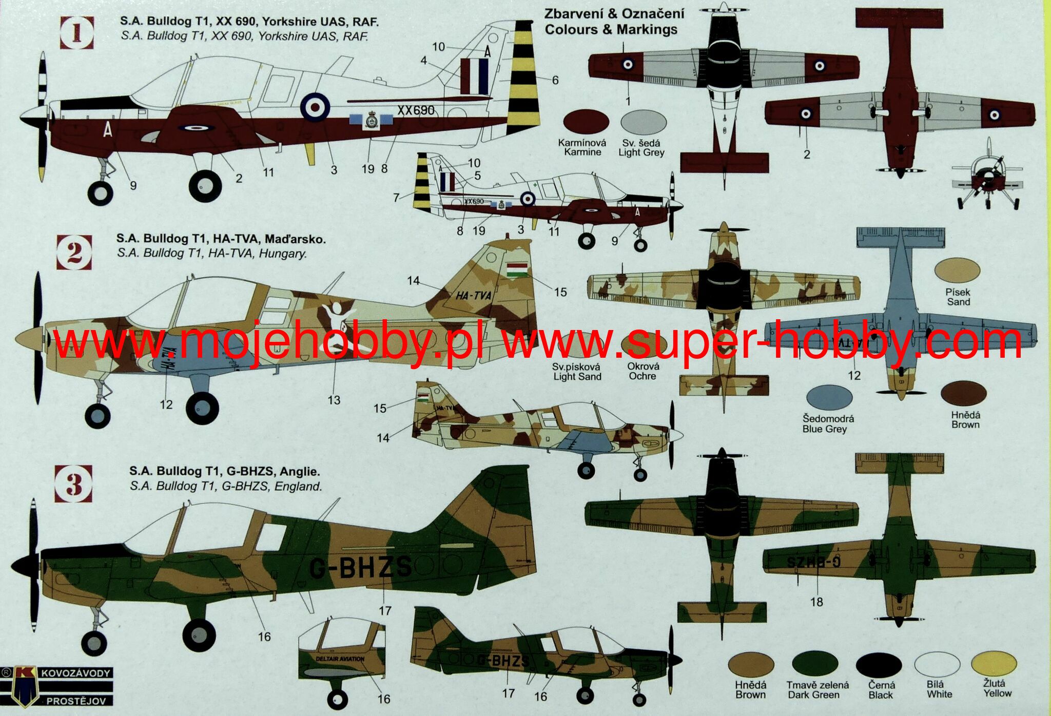 Scottish Aviation Bulldog is a modern British low-wing fixed landing gear trainer, which was flew in 1969, and during its production (which lasted in 1969-1982), about 330 machines of this type were created. The aircraft, in the Bulldog Series 120 version, is 7.1 meters long with a wingspan of 10.11 meters. The drive is provided by a single Lycoming IO-360-A1B6 engine with a maximum power of 200 HP. The maximum speed is 240 km / h, with a climb speed of 5.3 m / s. The machine, optionally, can be armed with a single 7.62 mm machine gun or can carry a bomb load of up to approx. 290 kg. The Scottish Aviation Bulldog was originally called the Beagle B.125 Bulldog, but after Beagle Aircraft filed for bankruptcy, Scottish Aviation took over the production rights to the aircraft. The main recipients of these machines were the Swedish and British air forces, which used these aircraft for the basic training of pilots. Scottish Aviation was also used in the Royal Navy pilot training process. At the RAF, this type of aircraft was replaced at the beginning of the 21st century by Grob G 115 Tutor machines. A large number of Bulldog planes were exported and have been or are still used in countries such as Argentina, Kenya, Malaysia and Nigeria.