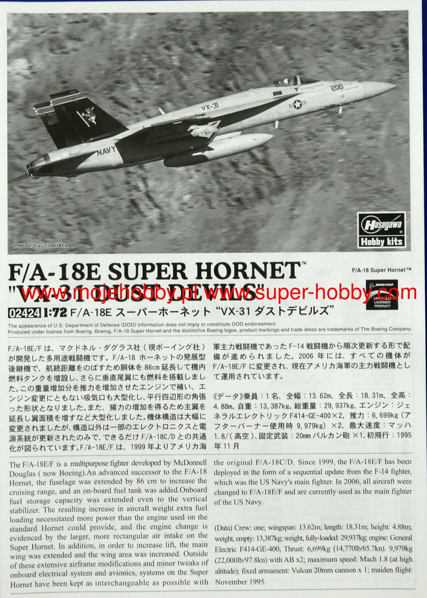 HASEGAWA 02424 F/A-18E SUPER HORNET `VX-31 DUST DEVILS` 1/72 (1/72) продается в 4 магазинах. Выберите подходящий Вам интернет-магазин и перейдите по ссылке «В магазин».