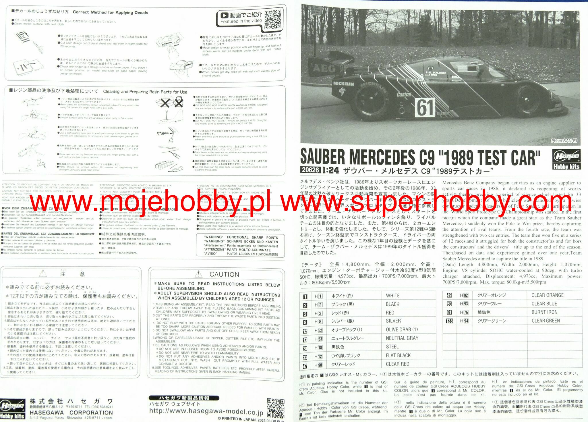 Купить SAUBER MERCEDES C9 1989 TEST CAR HASEGAWA (1/24)
