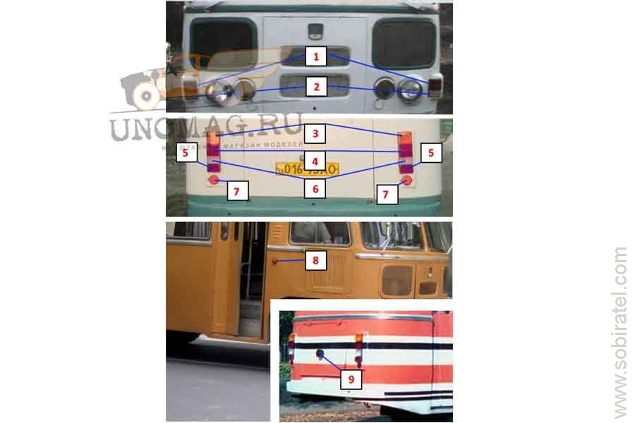 ААА-041 НАБОР ФОНАРЕЙ И ПОДФАРНИКОВ ДЛЯ ПАВЛОВСКИЙ АВТОБУС 672