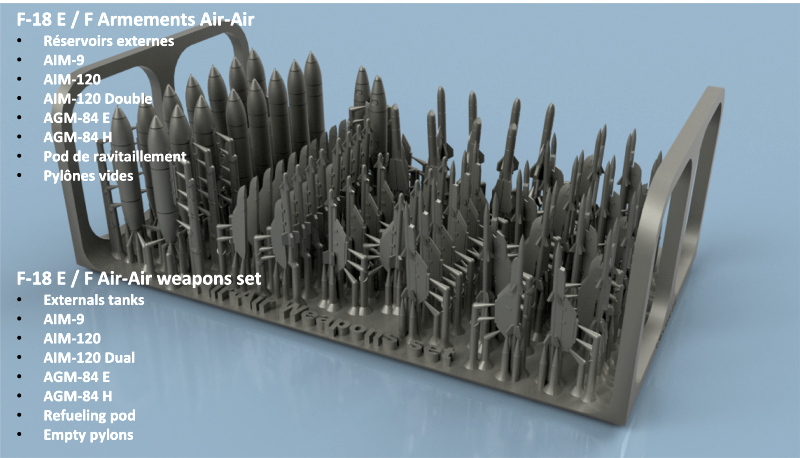 3D350122 F-18 F SUPER HORNET AIR-TO-AIR UNFOLDED WINGS (5 PLANES) l'arsenal 2.0 1/350