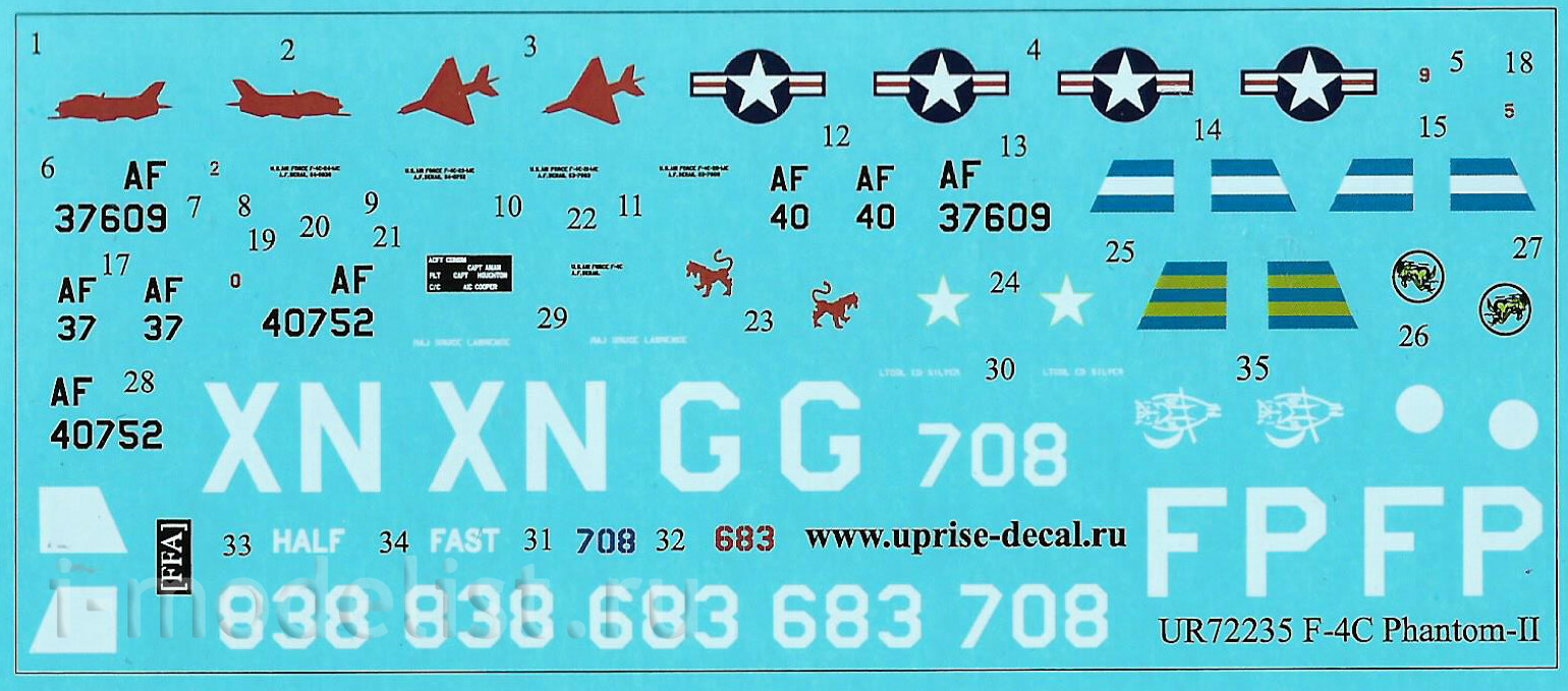 UR72235 UPRISE 1/72 ДЕКАЛИ ДЛЯ F-4C PHANTOM II VIETNAM WAR